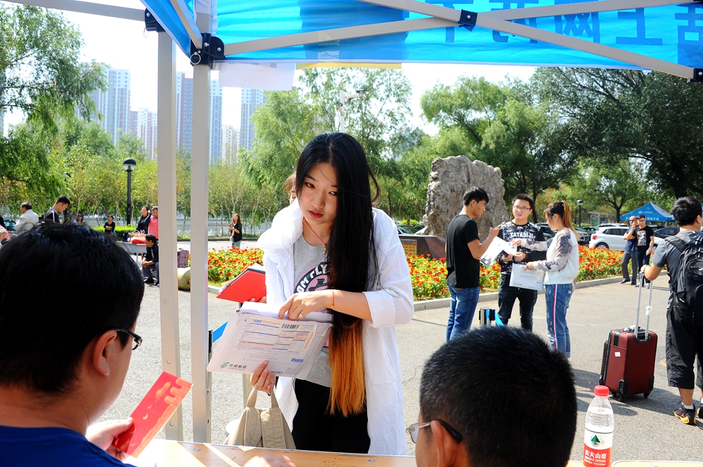 研究生部领导、各研究生培养学院领导、老师和研究生团委、研究生会的学生干部、志愿者热情迎接新生入学,细心引导新生办理各项入学手续,接收相关材料,发放校园一卡通,引导新生办理住宿手续。