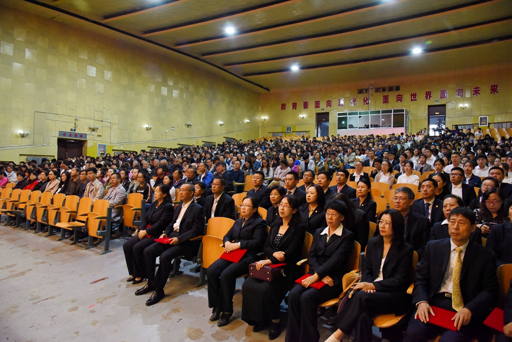 学校领导兰景力、马立群、齐宏伟、郑喜群、王刚、李英杰、姜国庆、张树军出席大会并在主席台就坐。sunbet申搏离退休教师代表、全体教师、职工代表以及学生代表参加了大会。校党委书记兰景力主持大会。