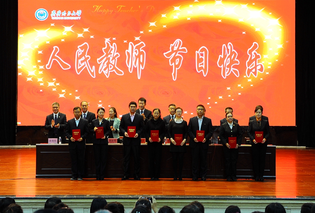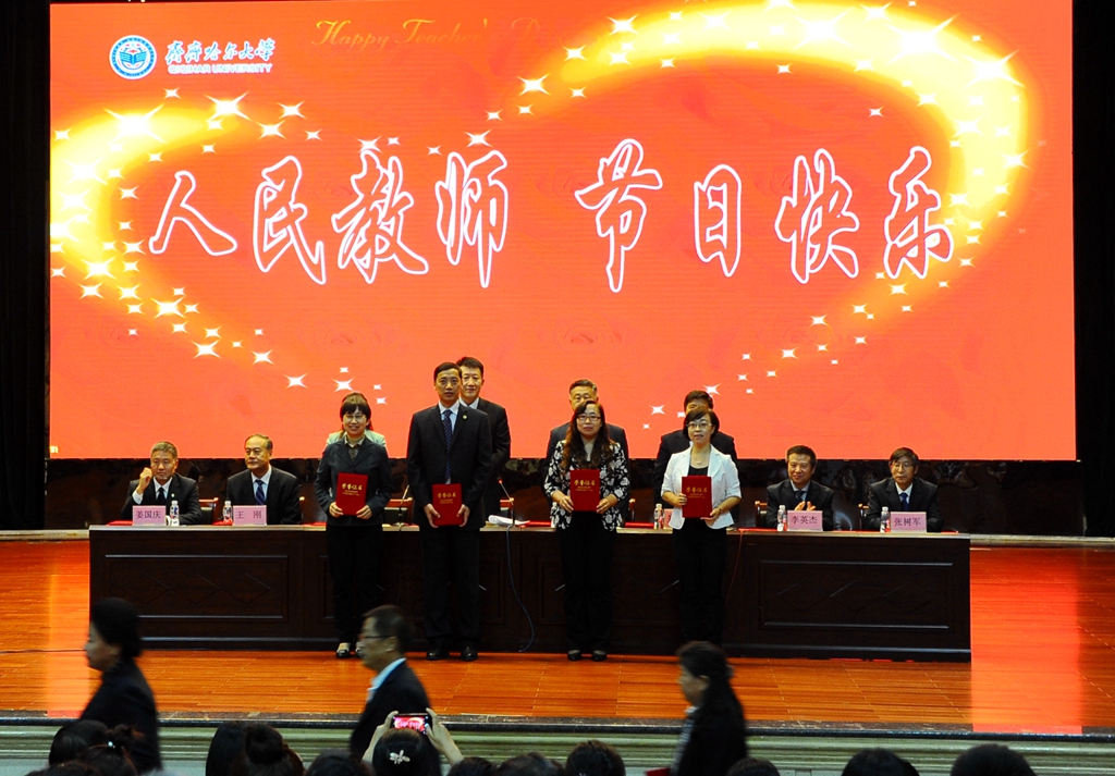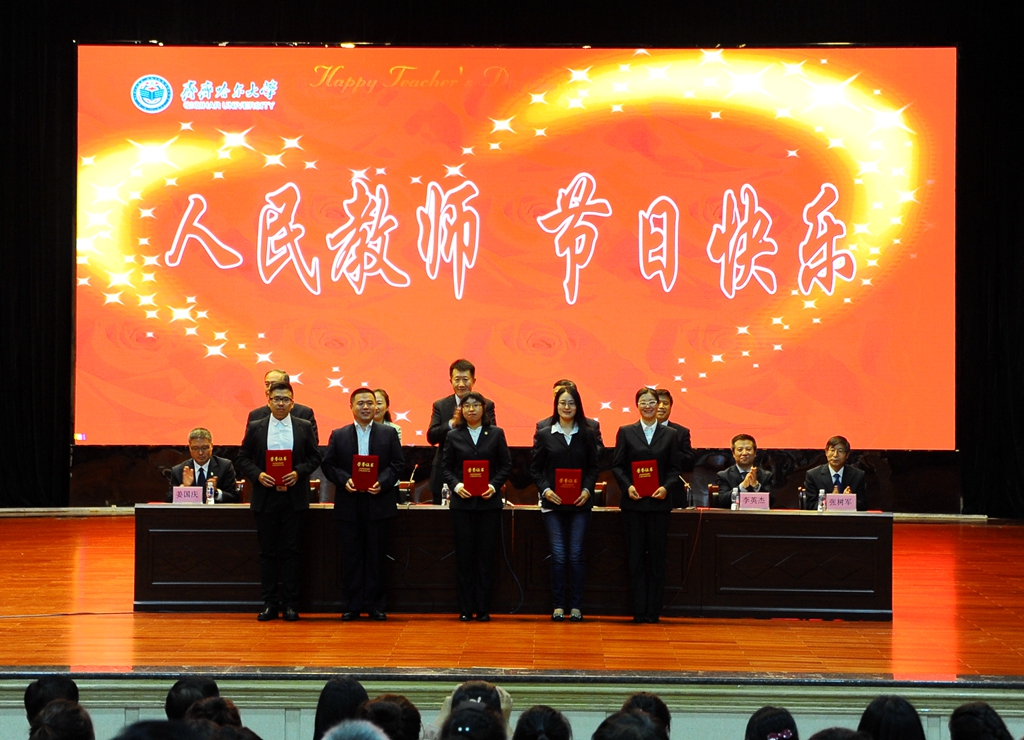 9月8日下午,学校领导与师生员工代表在中区文化宫欢聚一堂,以表彰先进、新教师入职宣誓的方式庆祝第三十三个教师节。
