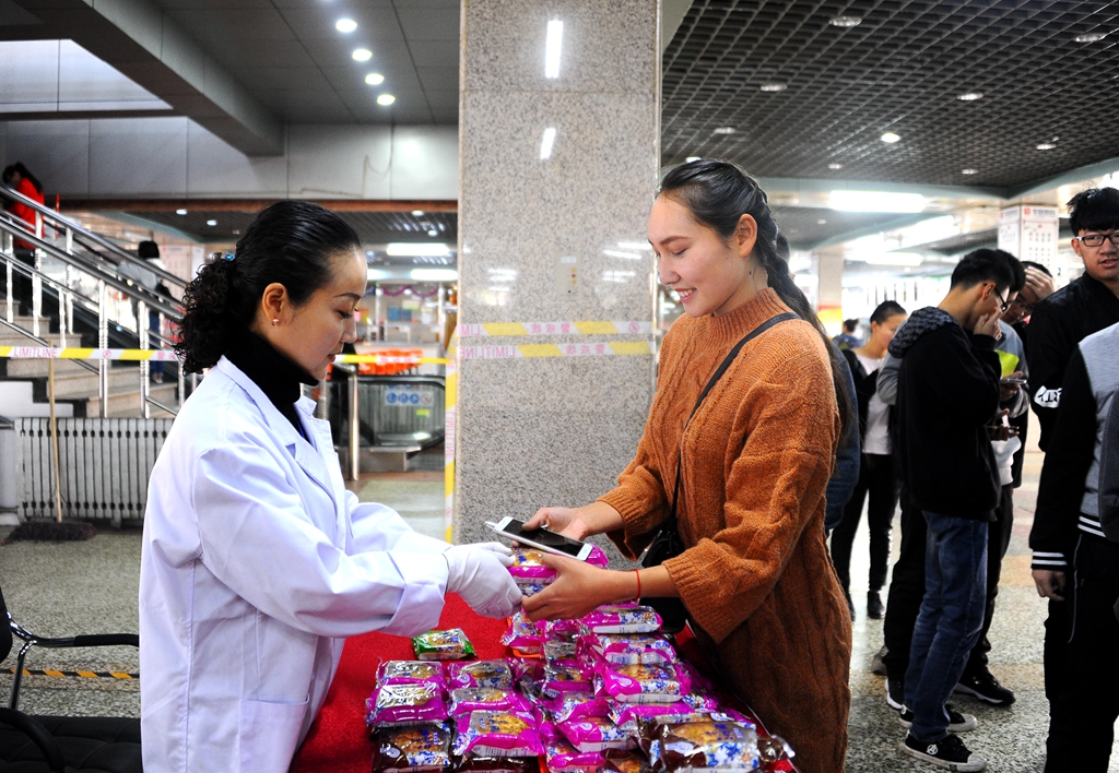 10月4日上午,sunbet申搏中区学生食堂二楼内弥漫着喜庆和甜蜜的气息,同学们满怀着喜悦的心情,早早就等候在了月饼发放地点。