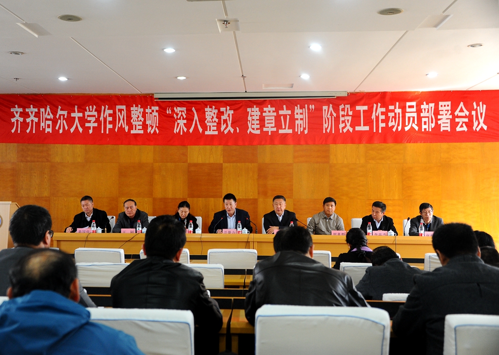按照省委和省委高校工委的部署和要求,10月13日下午,学校在西区主楼七楼学术报告厅召开作风整顿“深入整改、建章立制”阶段工作动员部署会议。学校领导班子成员兰景力、马立群、齐宏伟、郑喜群、王刚、李英杰、姜国庆、张树军出席会议。全校正处级领导干部以及各部门、各单位单位负责人参加了会议。会议由校党委书记兰景力主持。
