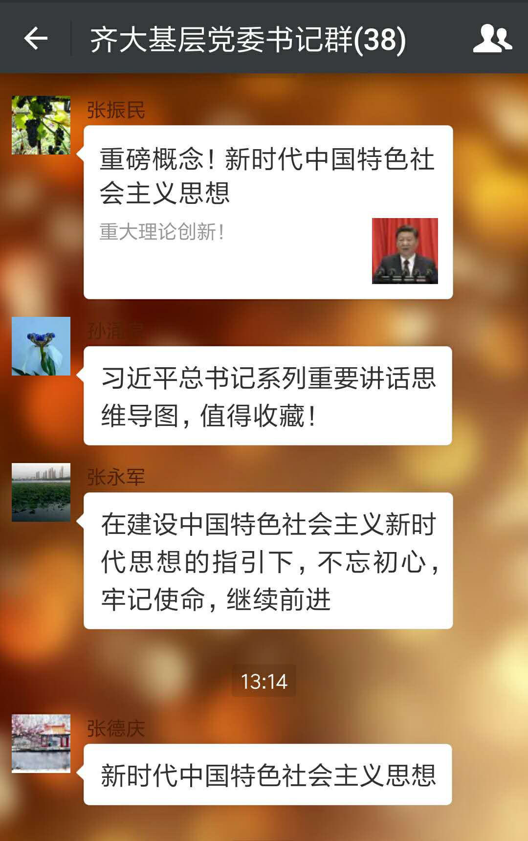 学校党委要求全校各级党组织切实增强政治意识、大局意识、核心意识、看齐意识,把学习宣传贯彻落实党的十九大精神和习近平总书记的工作报告作为当前首要政治任务来抓,我们要更加紧密地团结在以习近平同志为核心的党中央周围,坚定理想信念,立足自身岗位,勇挑时代重担,不忘初心,继续前进。