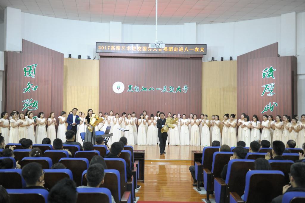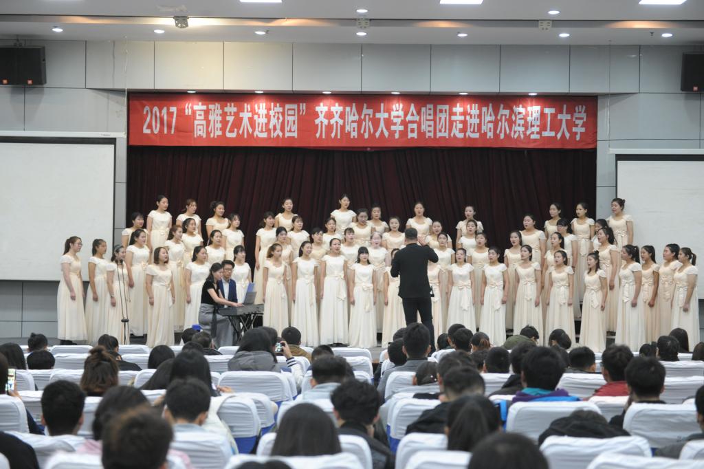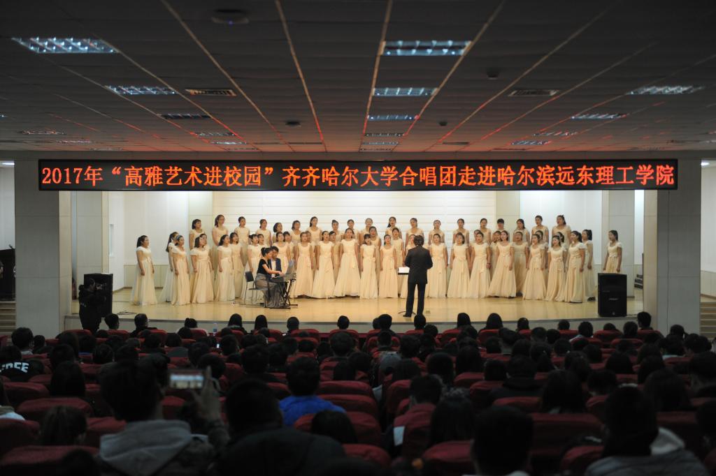 在中国共产党第十九次全国代表大会召开之际,为传承和弘扬高雅艺术,10月20—23日,受黑龙江省教育厅、文化厅、财政厅的指派,sunbet申搏官方网站音乐与舞蹈学院院长孙相根,校党委宣传统战部副部长何强,音乐与舞蹈学院管弦系主任郭旭,带领sunbet申搏官方网站合唱团70余名师生,赴哈尔滨远东理工学院、哈尔滨理工大学、大庆医学高等专科学校、黑龙江八一农垦大学、大庆职业学院开展了五场“高雅艺术进校园”专场演出。