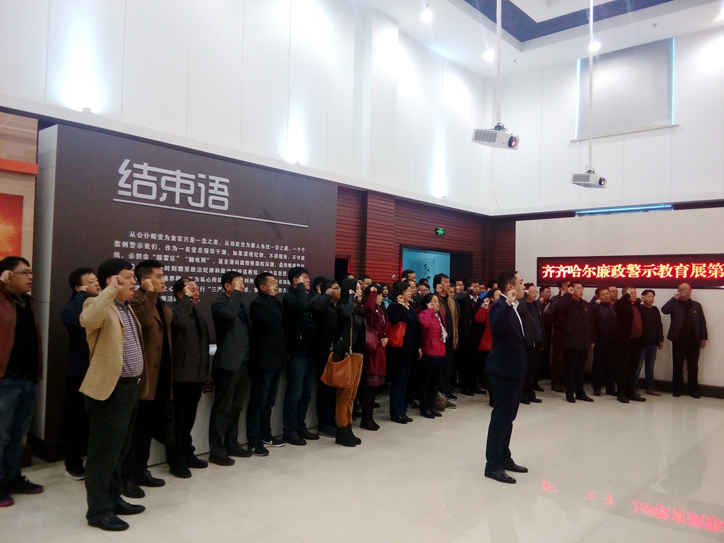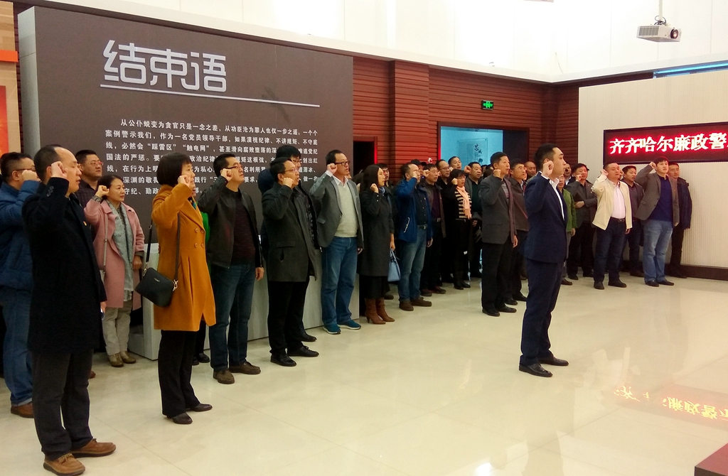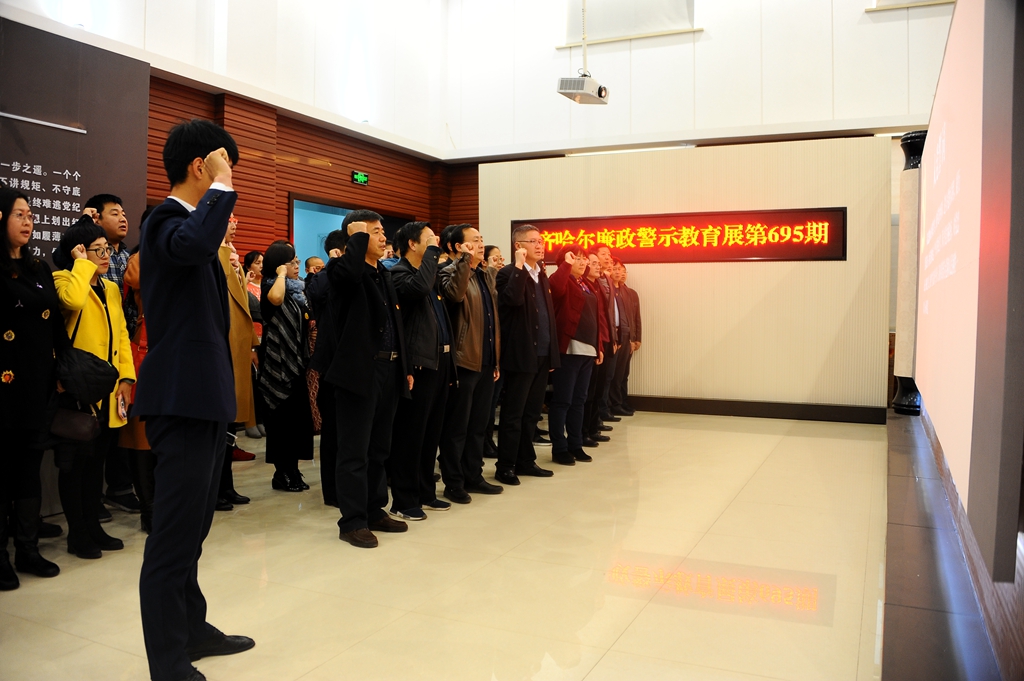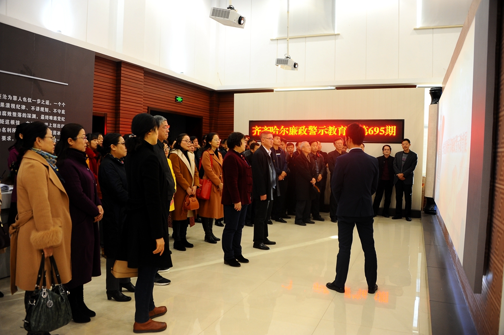 按照《sunbet申搏官方网站作风整顿“深入整改、建章立制”阶段工作安排的通知》和《sunbet申搏官方网站关于开展“以案为鉴、优化作风”专题警示教育活动实施方案》要求,10月26日,学校纪委组织全校正科级以上领导干部280余人参观了齐齐哈尔市廉政警示教育基地。本次活动由党委常委、纪委书记姜国庆带队,纪检监察处相关工作人员一同参加了参观学习活动。