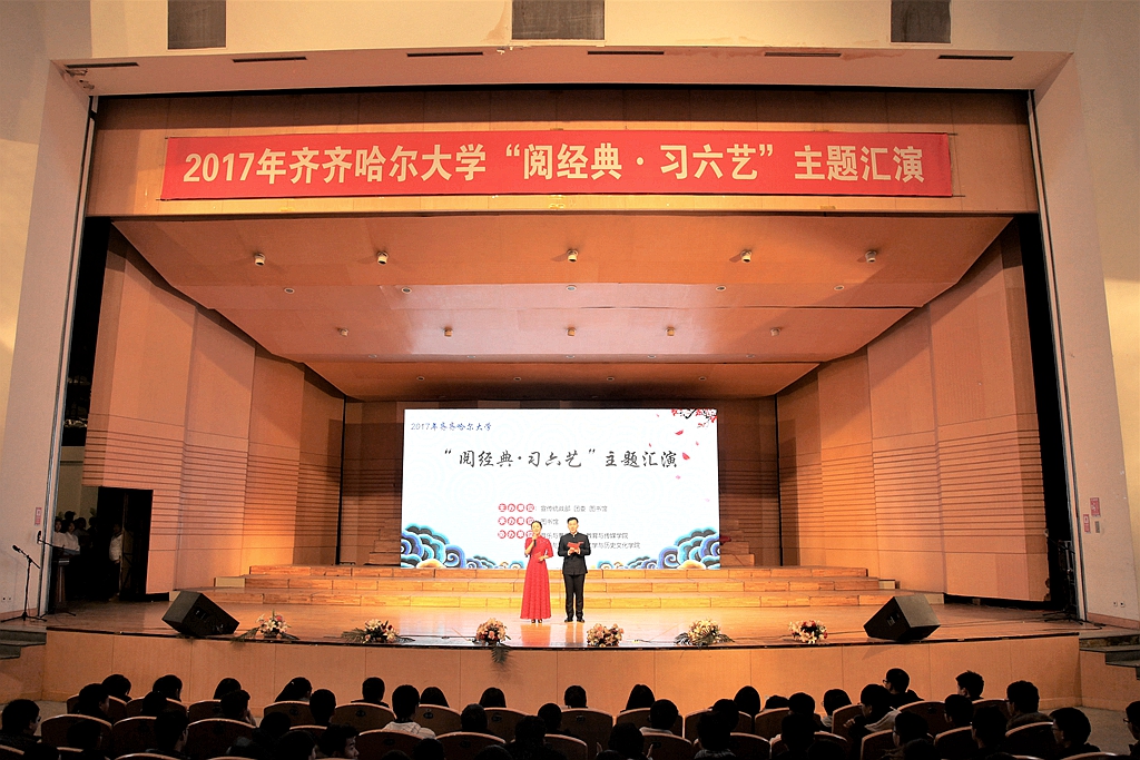 11月18日晚6时,sunbet申搏官方网站2017“知网杯”国学知识竞赛颁奖典礼暨“阅经典 习六艺”主题汇演在音乐厅隆重举办。本次活动由校党委宣传统战部、校团委和图书馆主办,图书馆承办,音乐与舞蹈学院、经济与管理学院、教育与传媒学院以及文学与历史文化学院协办。校长马立群、校党委副书记齐宏伟、副校长郑喜群、副校长张树军出席活动,学校相关单位负责人、各学院主管学生工作的党委书记、副书记副院长和sunbet申搏1000余名师生一起观看了本次演出。