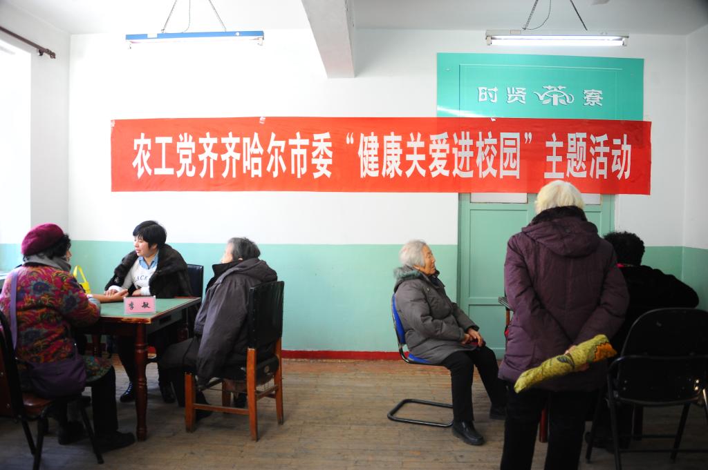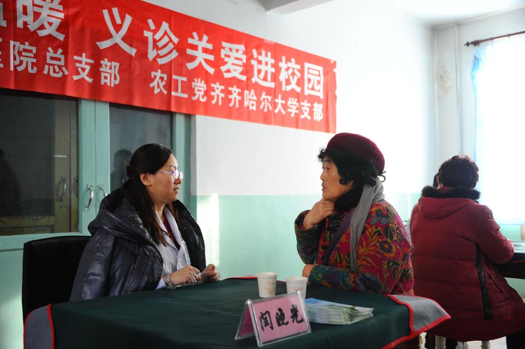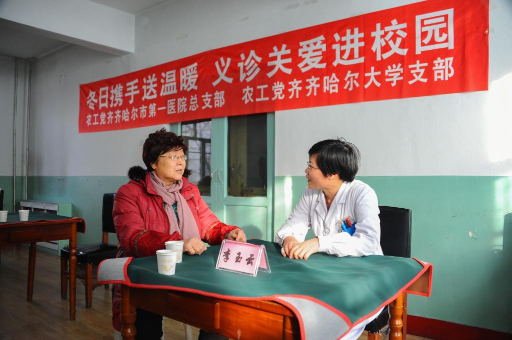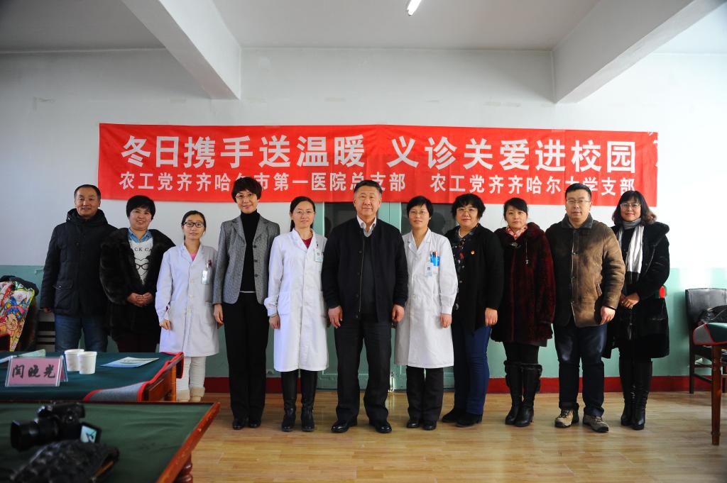 由农工党齐齐哈尔市第一医院总支部和sunbet申搏官方网站支部共同发起的“冬日携手送温暖,义诊爱心进校园”活动于12月7日下午在sunbet申搏老干部活动中心举行。本次活动是在农工党齐齐哈尔市委和学校党委宣传统战部大力支持下,在老干部处密切配合下,两个支部共同组织策划开展的面向学校离退休老干部、老教师的寻医问诊活动。