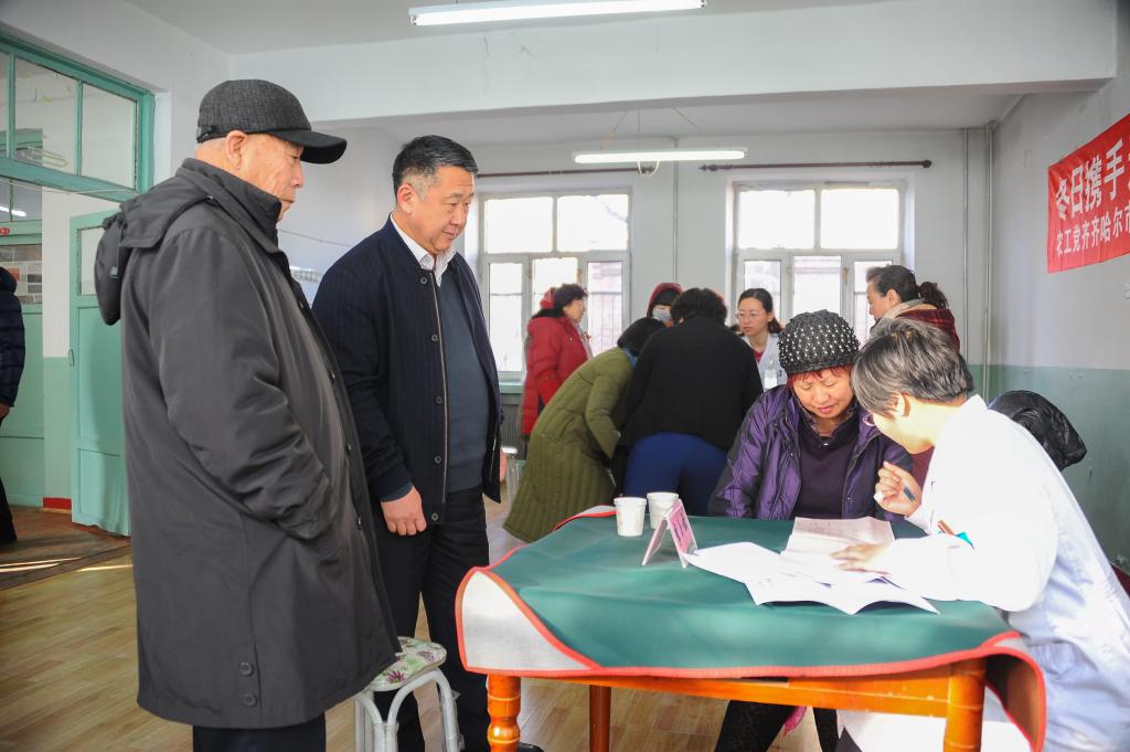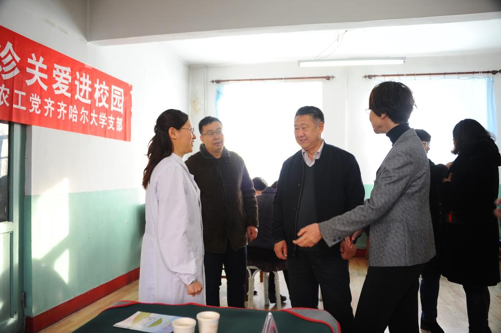 农工党黑龙江省委主委、校长马立群来到现场看望老干部、老教师。他问寒问暖问健康,和老同志们进行了深入交流。他与在场党员们交流时指出:“老干部、老教师为sunbet申搏官方网站发展做出很大贡献,我们要关心他们的健康。要充分发挥我们农工党的特色优势,开展好社会服务活动,体现农工党的宗旨。他对农工党齐齐哈尔市委的工作给予充分肯定,同时感谢第一医院党员同志们在百忙之中寻医问诊奉献爱心。