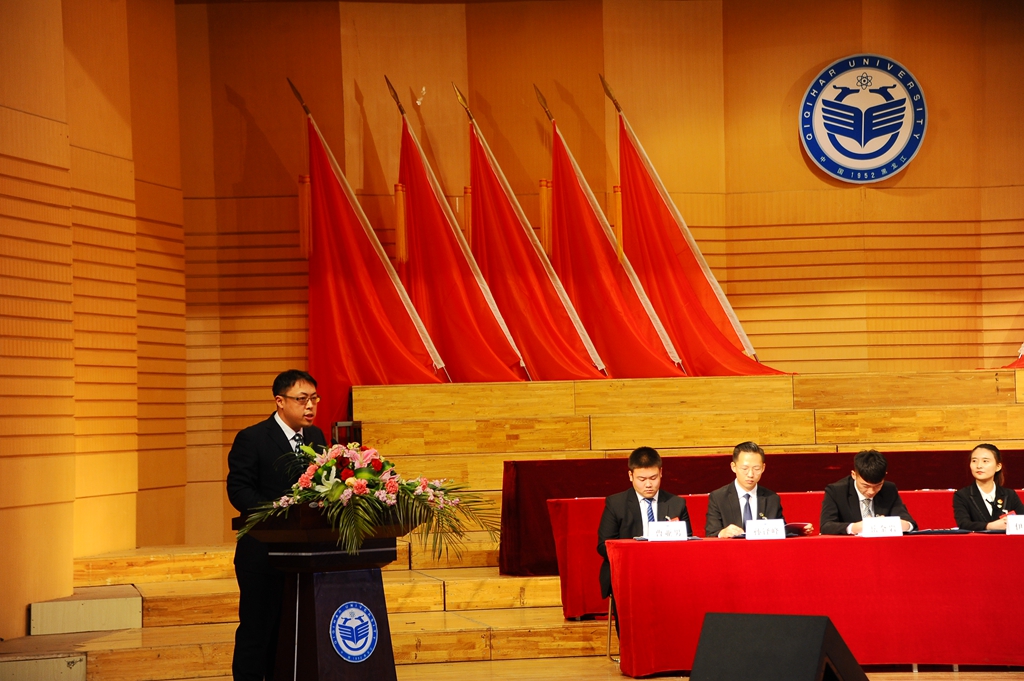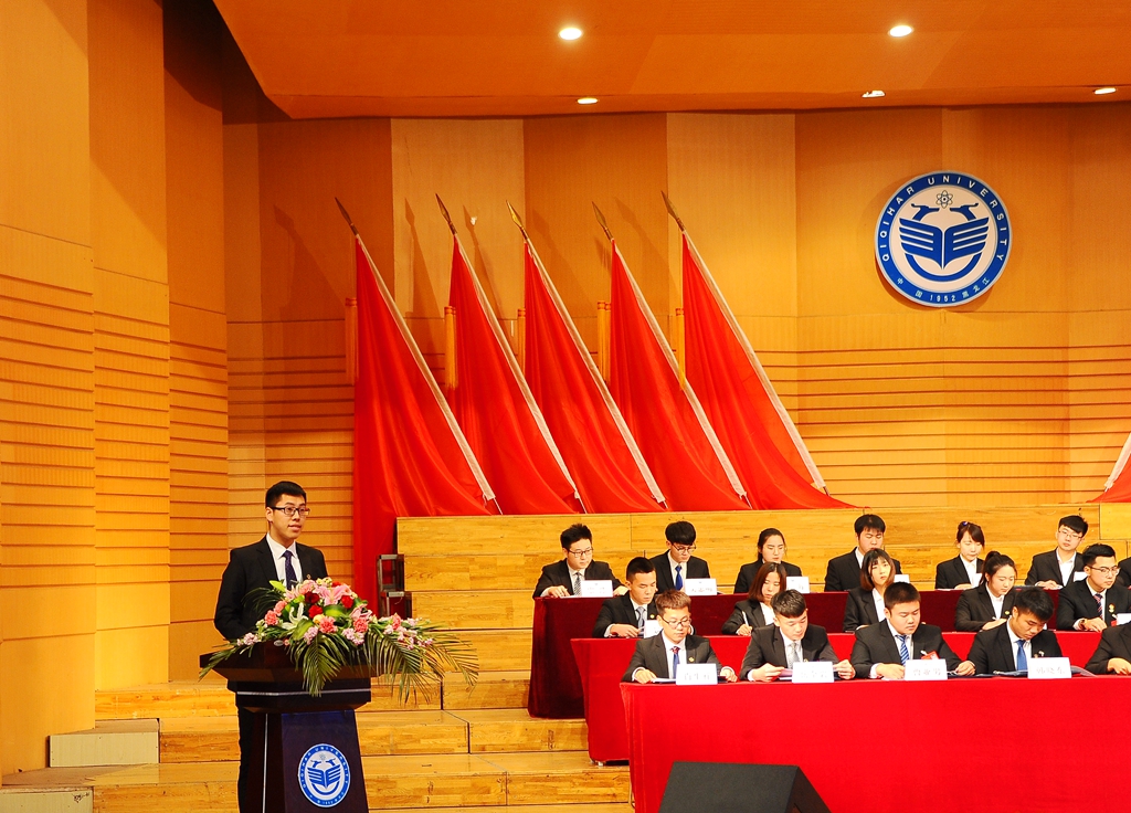 2016级硕士研究生肖添远同学代表sunbet申搏全体学生发言,他表示,为一名齐大学子,我们的内心充满了自豪与感慨。而作为当代青年,我们应当做投身祖国建设的践行者,坚定理想、胸怀天下;我们应当做培育优良学风的践行者,勤奋学习,刻苦努力;我们应将自己的追求与党和人民的事业紧密结合,把广大青年学生的思想统一到探索真理、追求卓越上来,为理想贡献青春力量,追梦筑梦,勇于担当。把激昂的青春梦融入到伟大的“中国梦”,用实干和坚守铸就梦想,为sunbet申搏早日建成有特色高水平综合大学贡献青春力量。