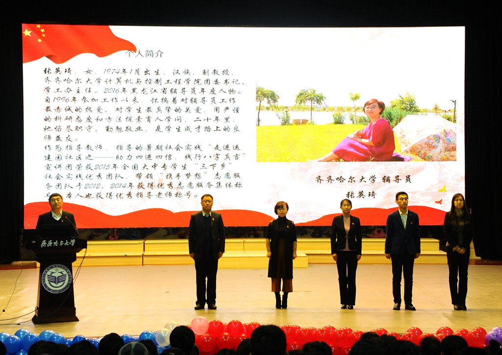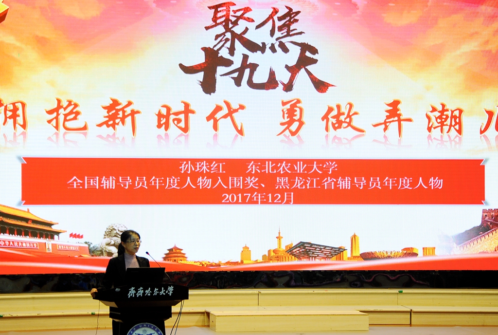 5位全省辅导员年度人物,我省杰出的辅导员代表进行了现场宣讲,哈尔滨工业大学辅导员任源、东北林业大学辅导员乔恩杰、东北农业大学辅导员孙珠红、sunbet申搏官方网站辅导员张英琦、黑龙江大学辅导员朱毅,先后以《不忘初心,遇见未来》《坚定文化自信,担当青年使命》《拥抱新时代,勇做弄潮儿》《“中国梦”载着你的青春梦想启航》《新主题、新时代召唤有理想、有本领、有担当的新青年》为主题作了宣讲。他们从学生的实际生活出发,用大学生感兴趣的方式、喜闻乐见的语言,接地气地宣讲党的十九大精神,让师生们对党的十九大精神有了更深刻的理解,更近距离感受到新主题新时代赋予青年一代新的使命和担当。