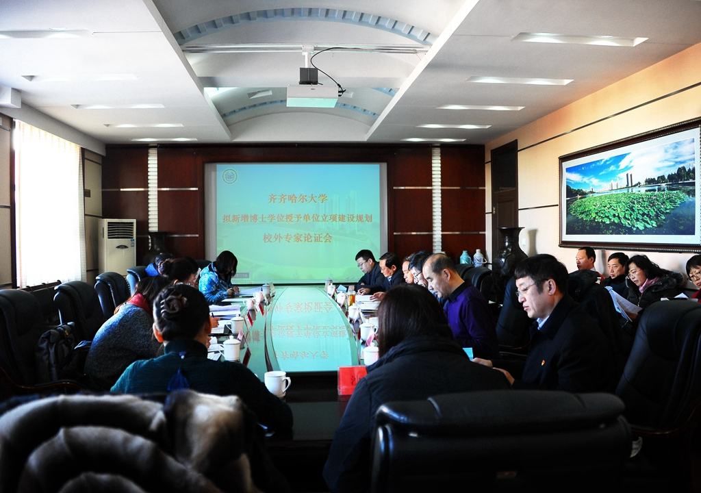 2017年12月27日下午,学校在办公楼504会议室召开拟新增博士学位授予单位立项建设规划校外专家论证会。邀请由哈尔滨师范大学博士生导师郭长虹教授任组长,东北石油大学博士生导师王尊策教授、黑龙江大学博士生导师秦川丽教授、哈尔滨商业大学博士生导师刘颖教授、东北林业大学博士生导师张智教授等专家组成的校外专家组来sunbet申搏,就学校拟新增博士学位授予单位立项建设规划进行论证。