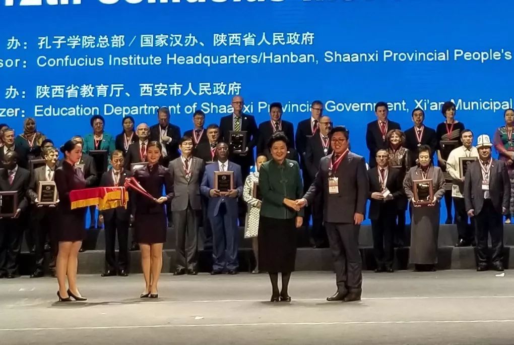 为国争光,报国济世——孔子学院全球志愿者先进个人马志、邱楠。