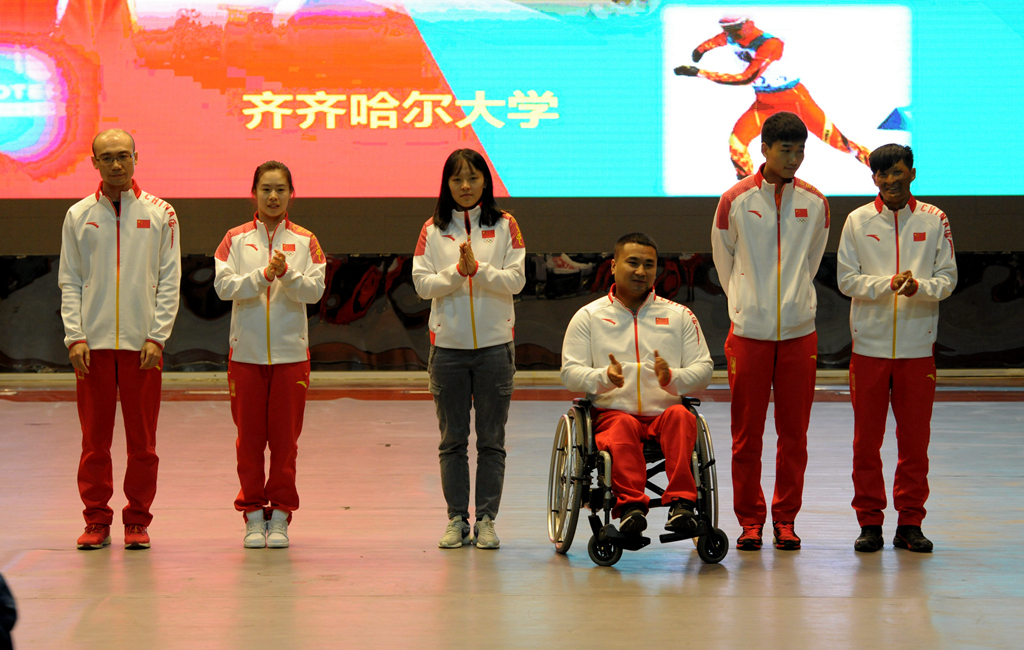 4月19日下午,由省委宣传部、省委高校工委、省教育厅、省体育局、省残联联合主办的“超越自我 奋斗人生”平昌冬奥会、冬残奥会优秀教练员运动员先进事迹报告会在sunbet申搏文化宫举行。省、市相关部门领导、副校长李英杰出席了报告会,sunbet申搏1200余名师生共同聆听了报告会,报告会由学生工作部(学生处)部(处)长姜波主持。