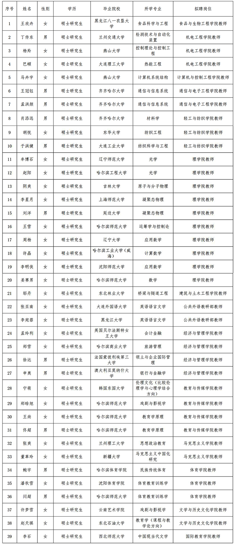 齐齐哈尔大学2019年上半年公开招聘拟聘用人员公示(二)