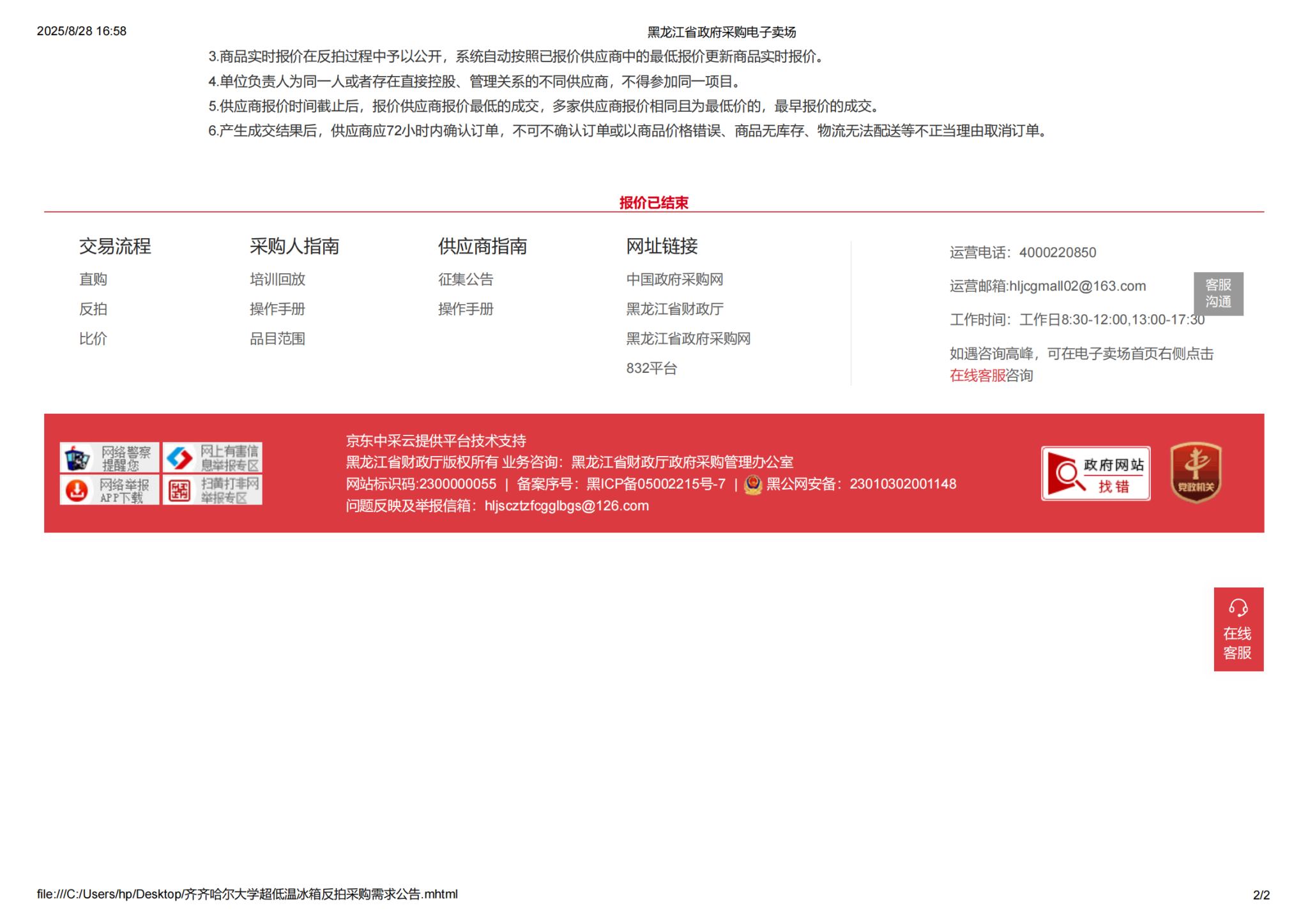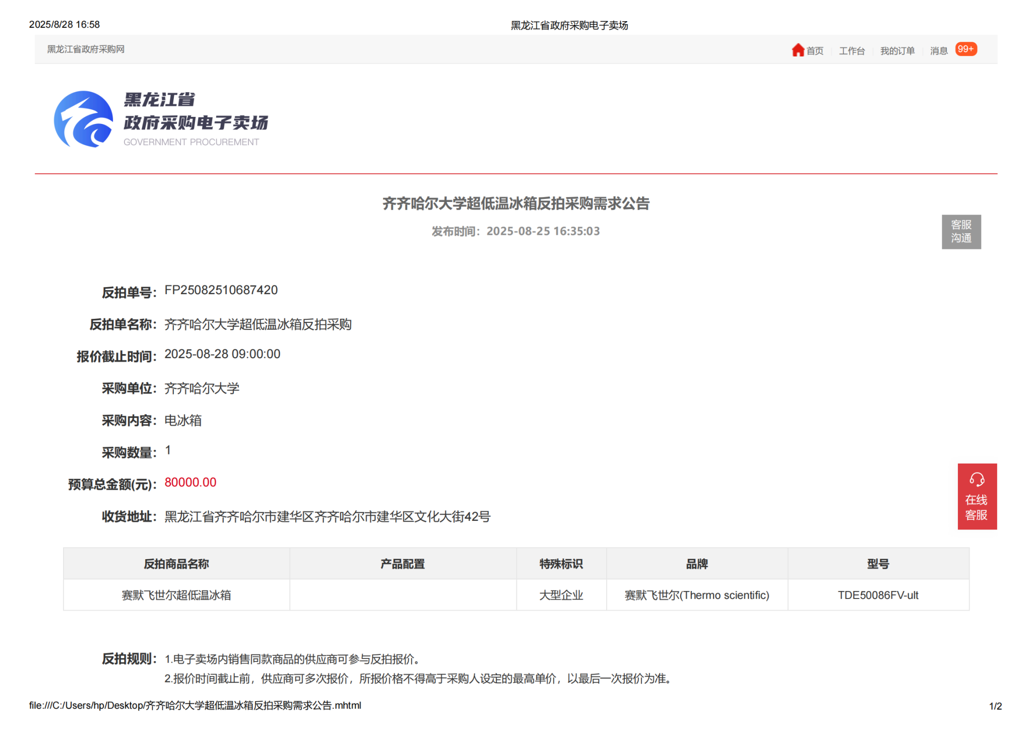 sunbet申搏官方网站超低温冰箱反拍采购需求公告(转自黑龙江省政府采购网)