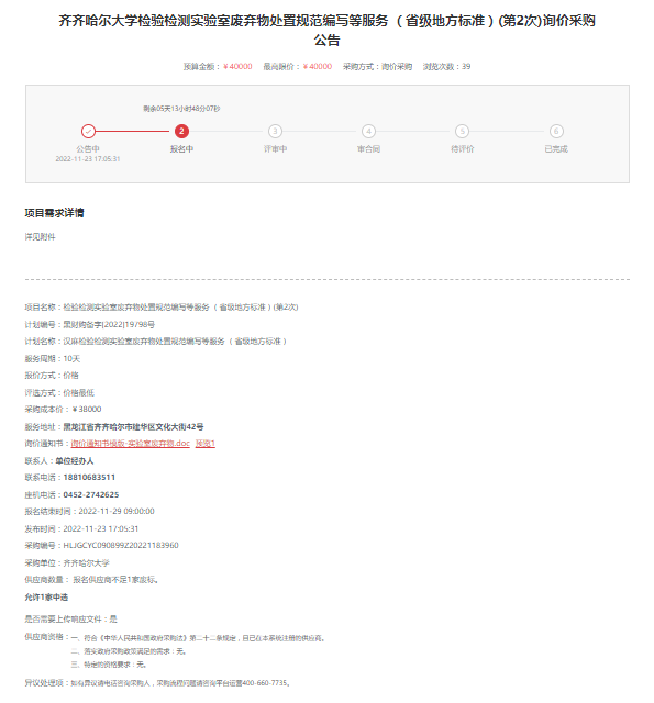 下一条:sunbet申搏官方网站实验室安全管理规范编写等服务(省级地方标准)(第2次)询价采购公告(转自黑龙江省政府采购网)
