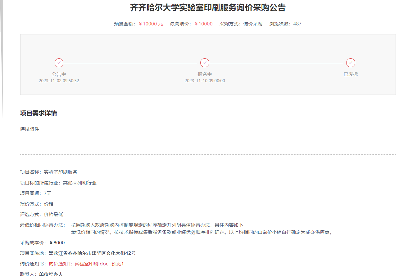 上一条:sunbet申搏官方网站实验室印刷服务(第2次)询价采购公告(转自黑龙江省政府采购网)