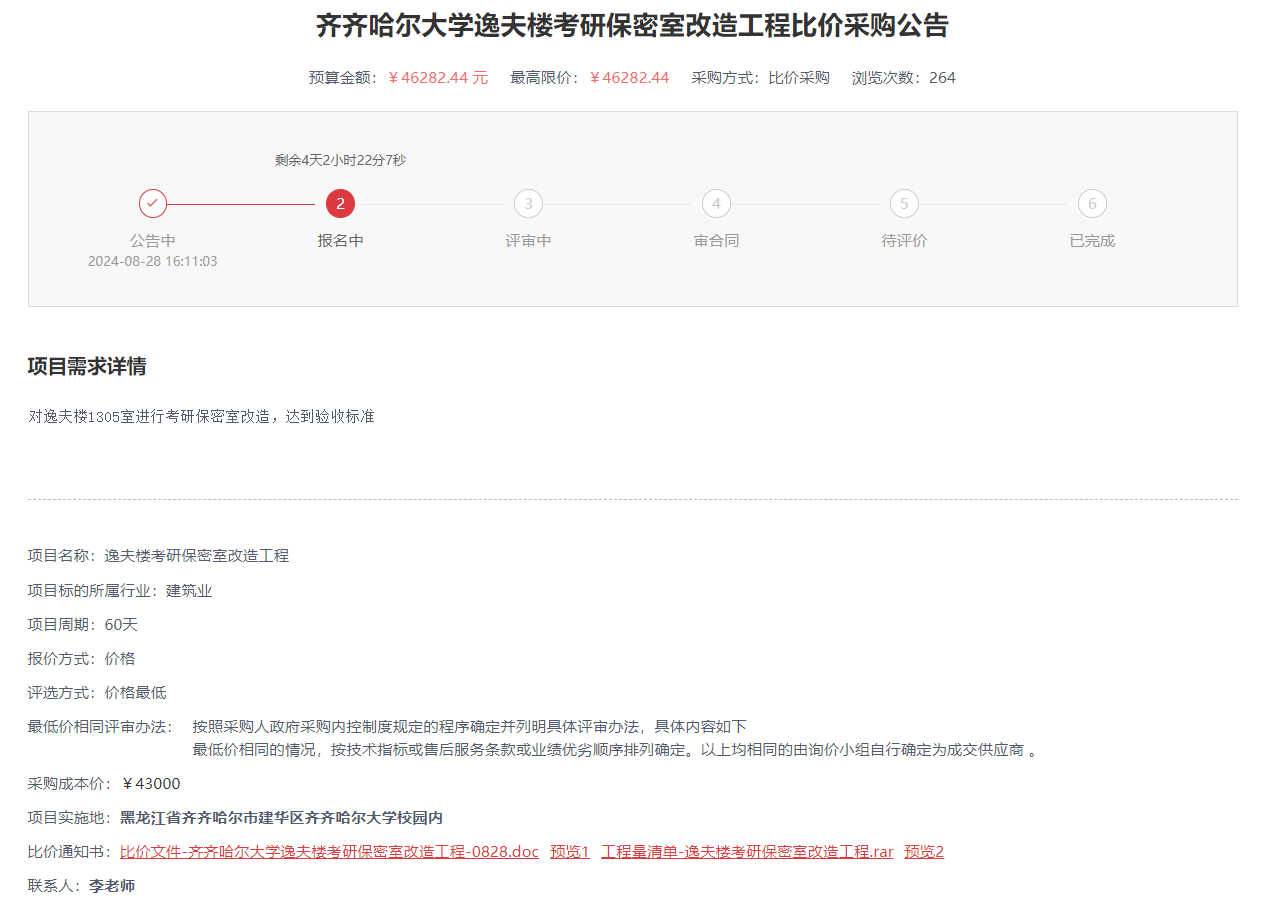 上一条:sunbet申搏官方网站逸夫楼考研保密室改造工程比价采购公告(废标)(转自黑龙江省政府采购网)