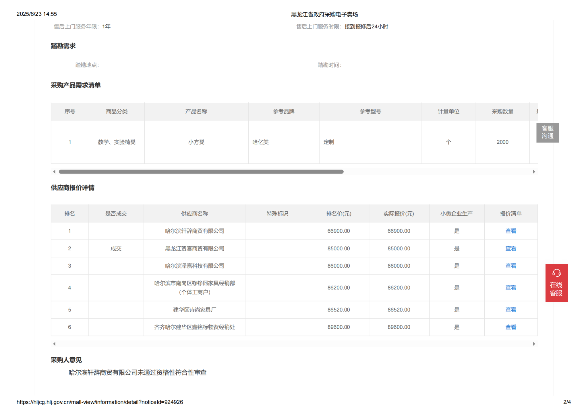 下一条:sunbet申搏官方网站2025年学生公寓单人学习桌比价比价采购成交公告(转自黑龙江省政府采购网)