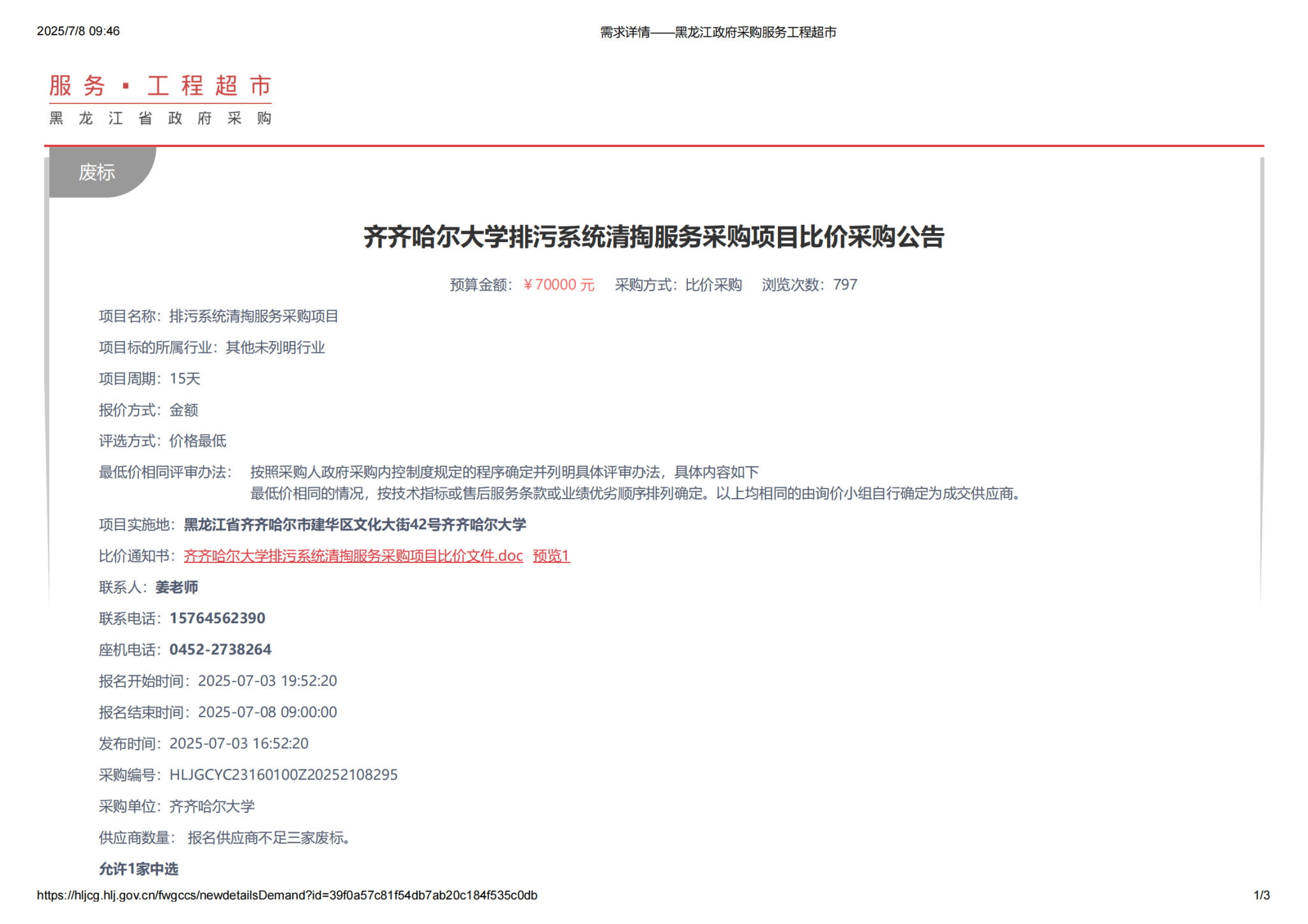上一条:sunbet申搏官方网站排污系统清掏服务采购项目(第2次)比价采购公告(转自黑龙江省政府采购网)