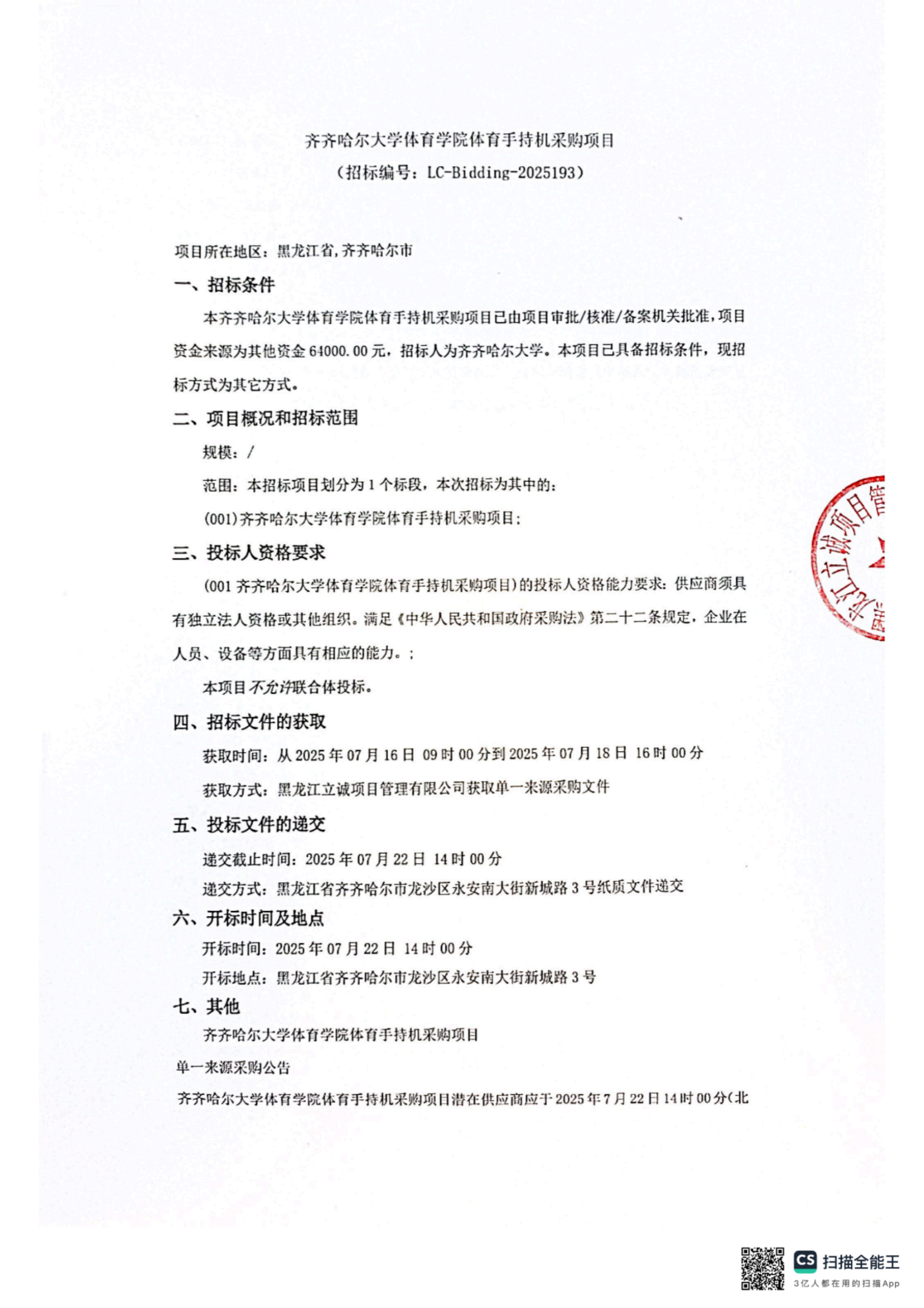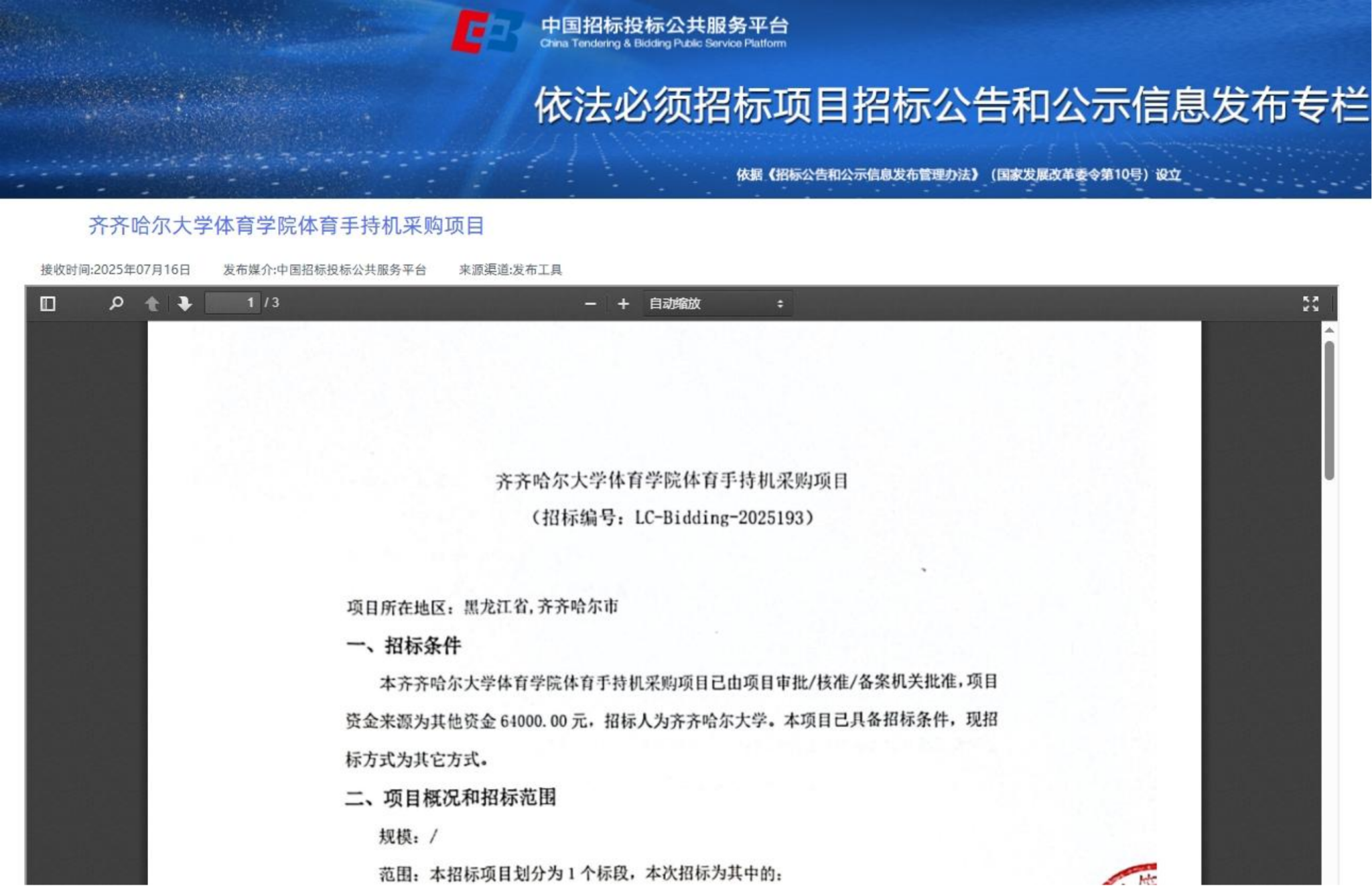 上一条:体育学院更新补充教学设备项目询价通知书(转自中国招标投标公共服务平台)