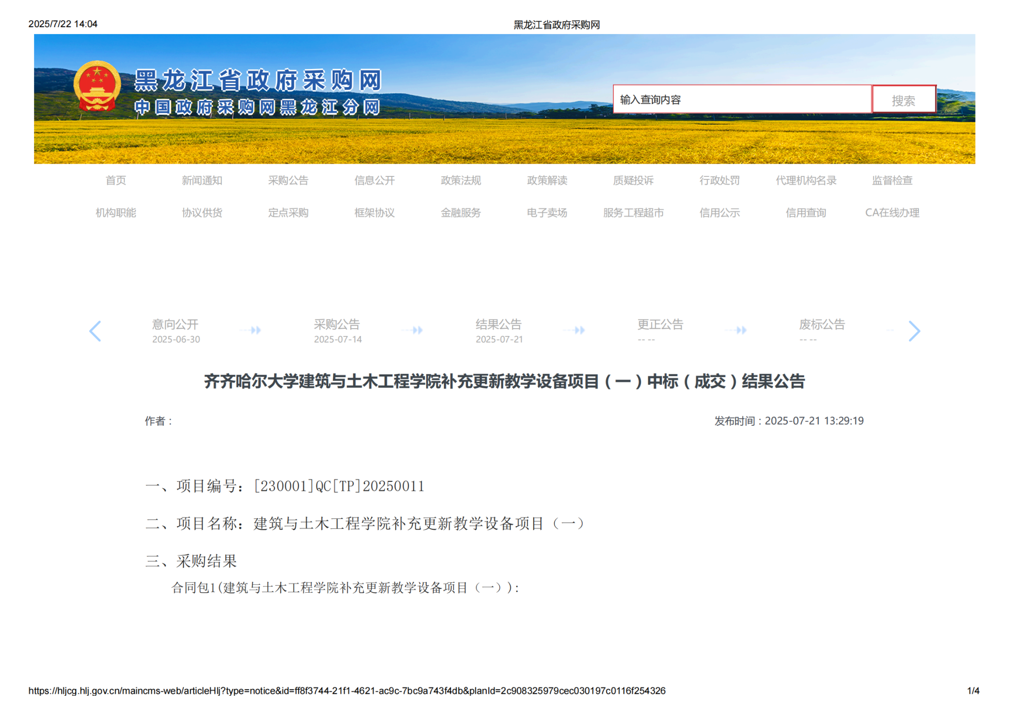 上一条:sunbet申搏官方网站建筑与土木工程学院补充更新教学设备项目(二)中标(成交)结果公告(转自黑龙江省政府采购网)