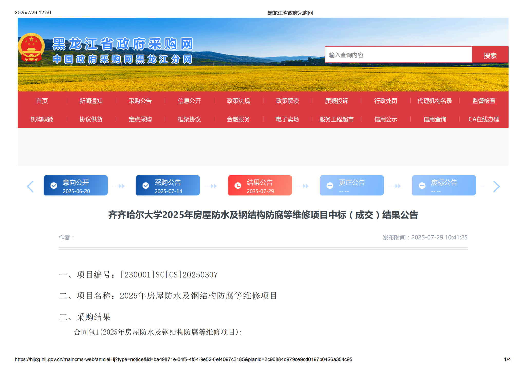 上一条:sunbet申搏官方网站2025年房屋防水及钢结构防腐等维修项目中标(成交)结果公告(转自黑龙江省政府采购网)