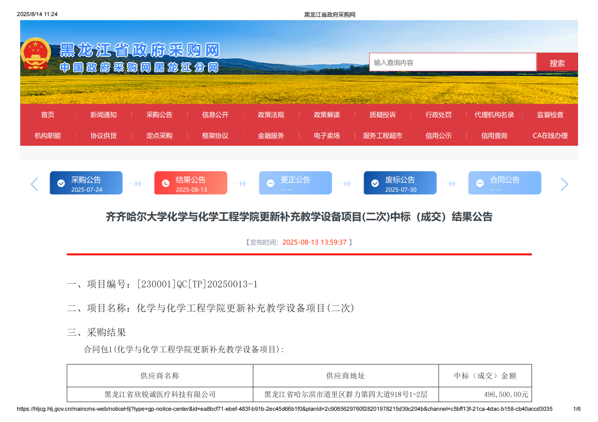 下一条:sunbet申搏官方网站精密控温夹套玻璃过滤结晶工作站设备采购项目竞争性谈判公告(转自黑龙江省政府采购网)