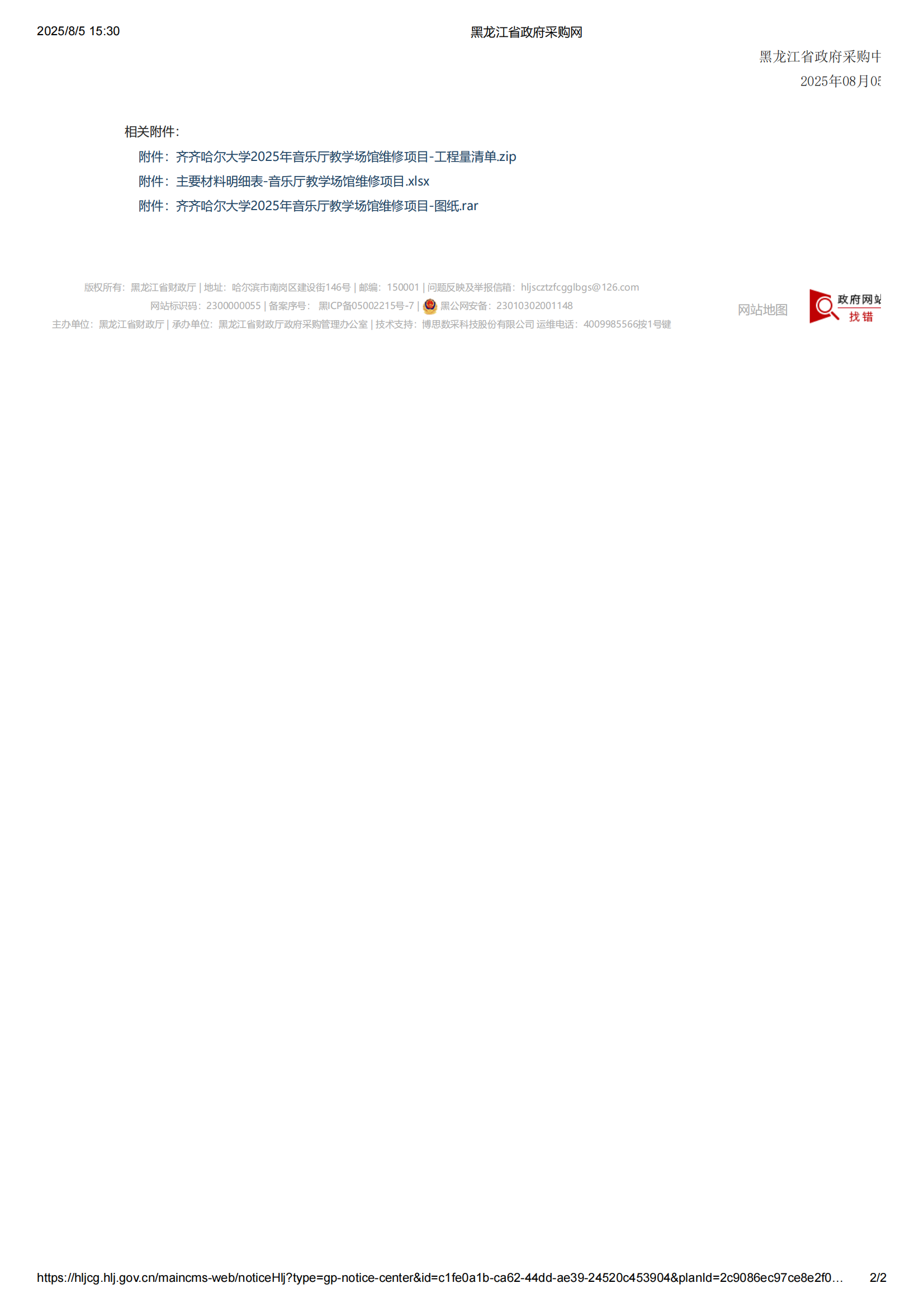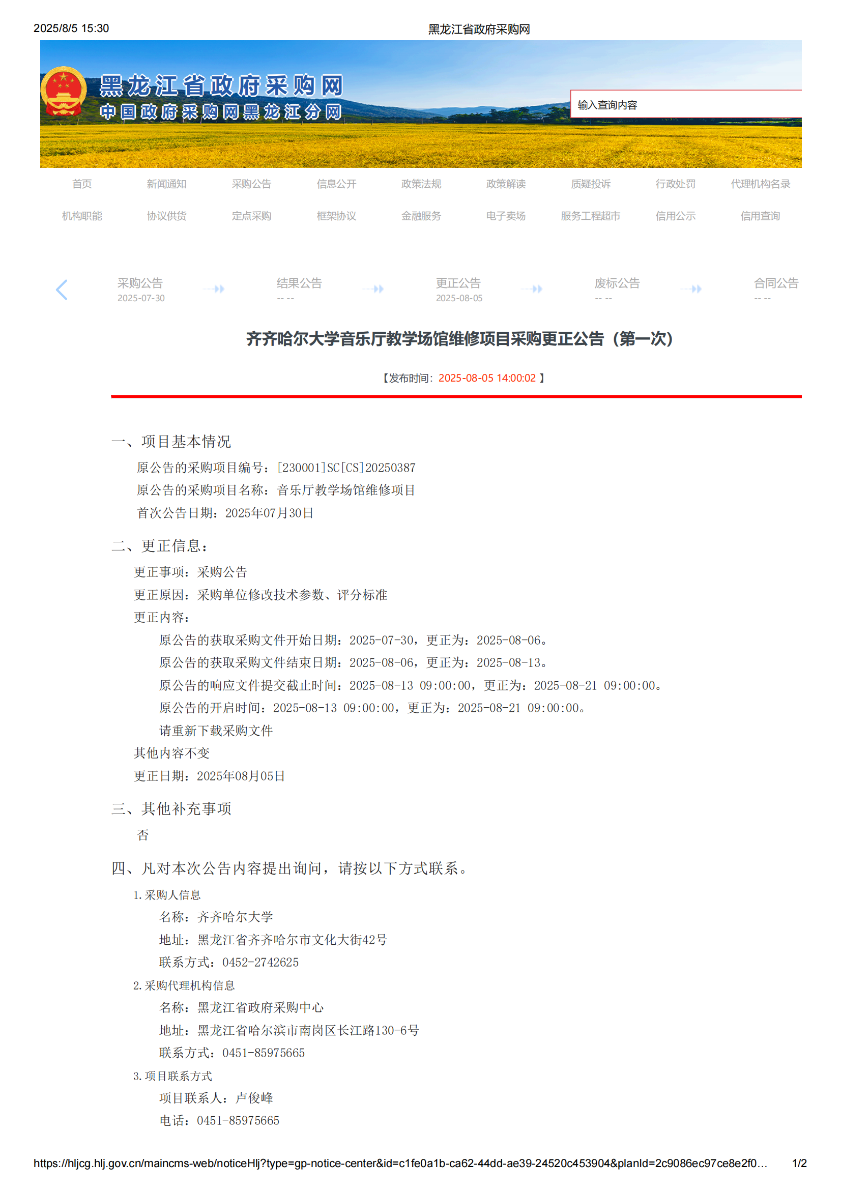 下一条:sunbet申搏官方网站音乐厅教学场馆维修项目竞争性磋商公告(转自黑龙江省政府采购网)