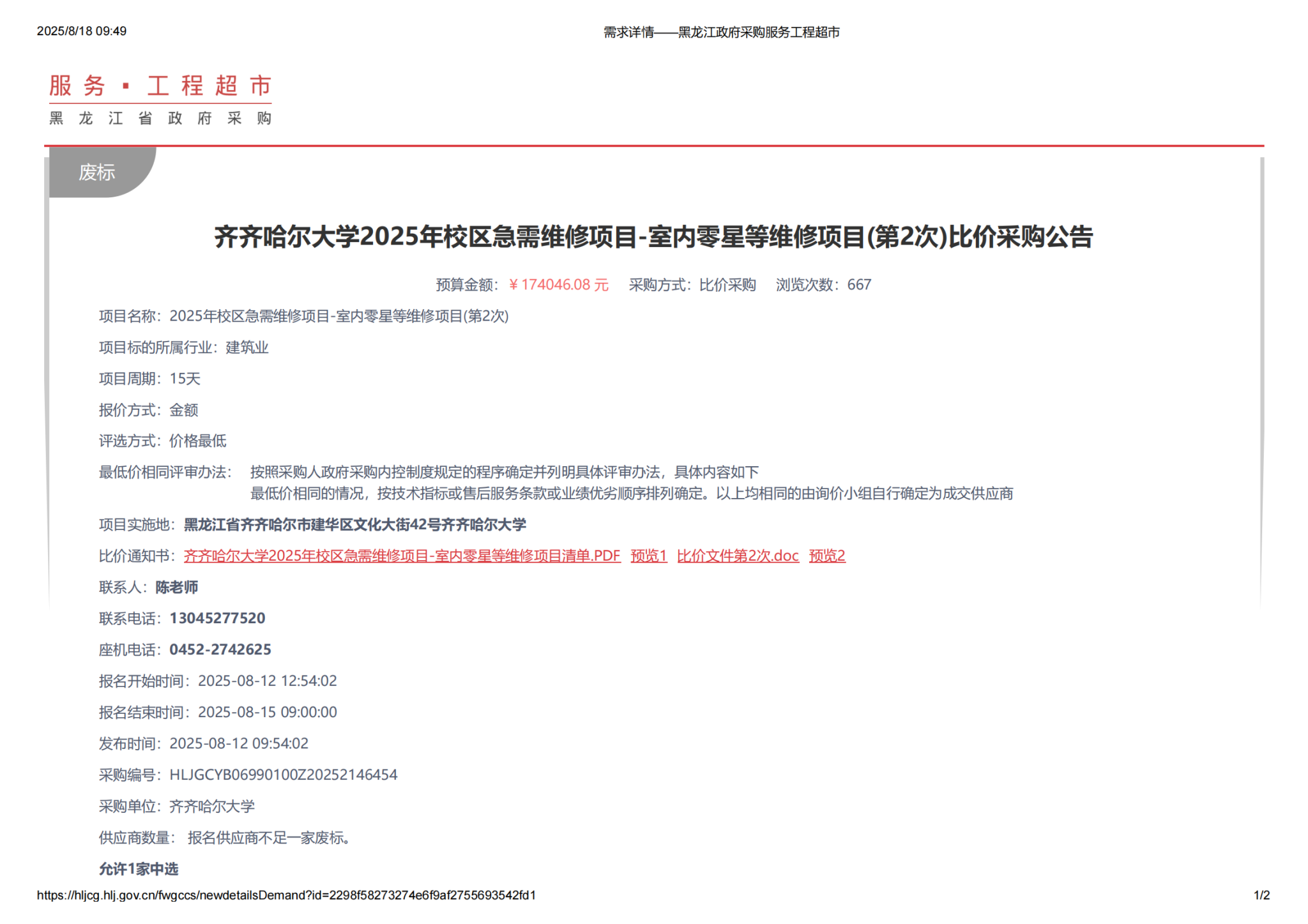上一条:sunbet申搏官方网站2025年校区急需维修项目-室内零星等维修项目(第3次)比价采购公告(转自黑龙江省政府采购网)