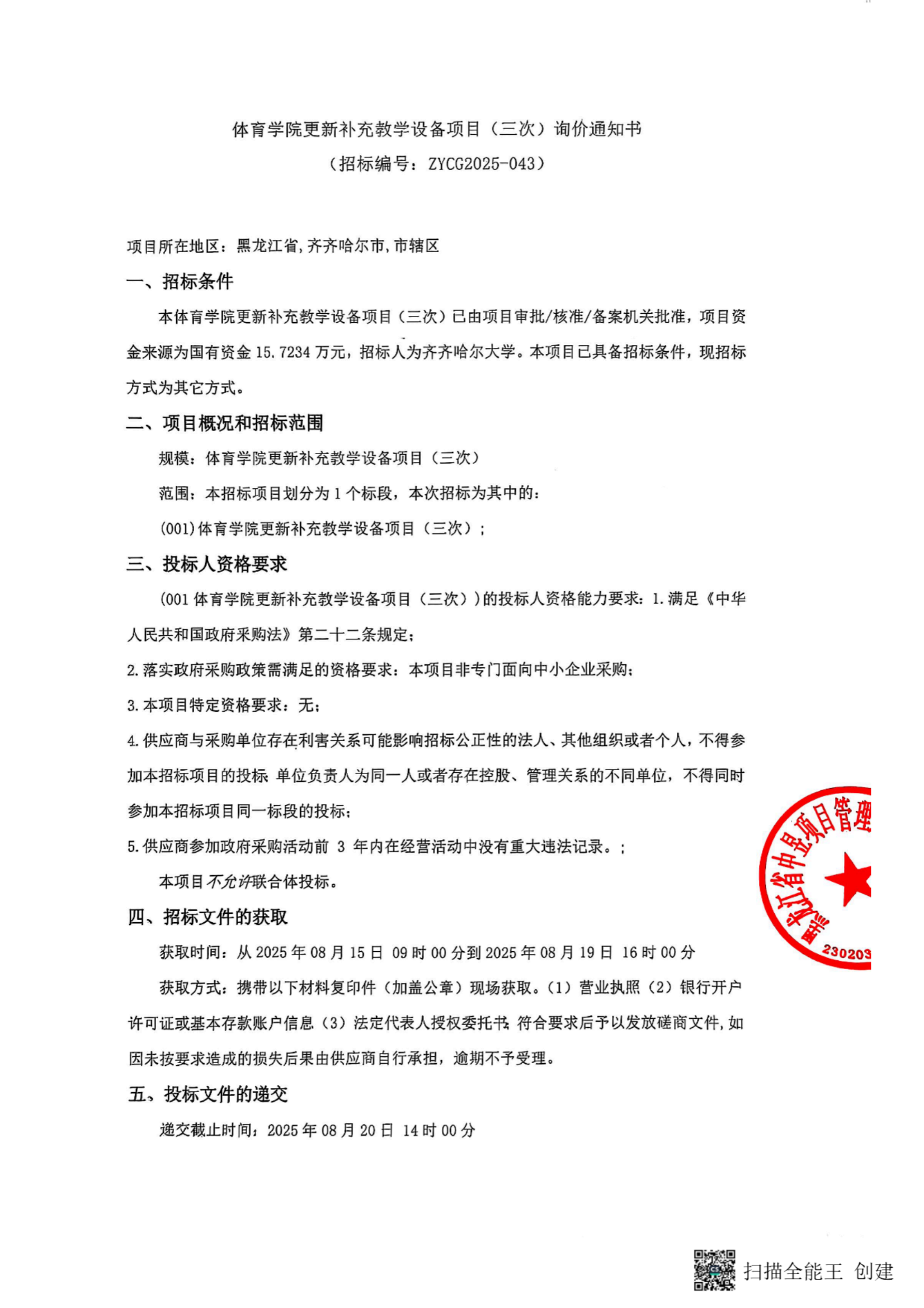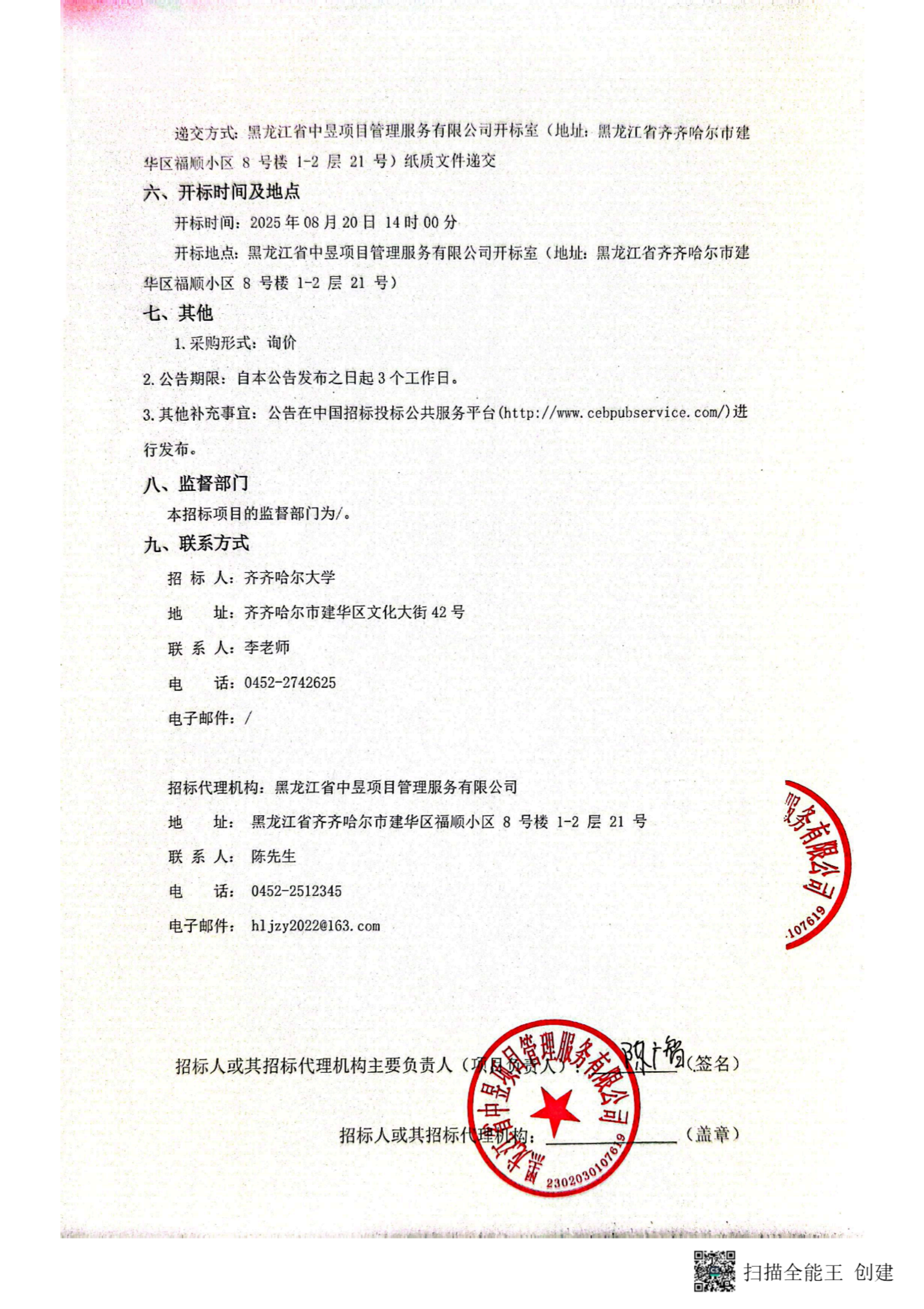 上一条:文学与历史文化学院(新闻传播学院)更新补充教学设备项目(三次)询价通知书(转自中国招标投标公共服务平台)