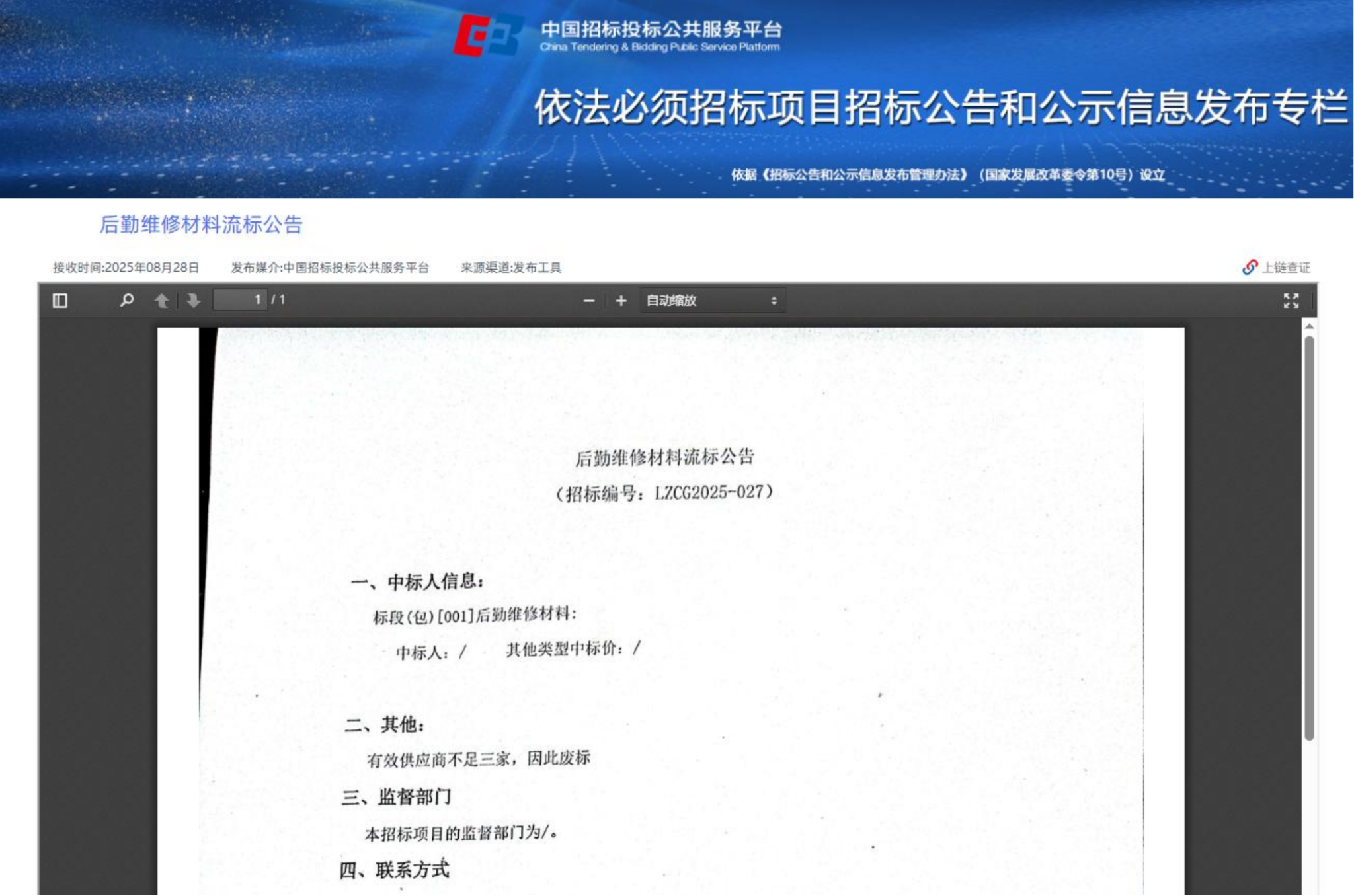 下一条:理学院实验杂品采购(二次)询价公告(转自中国招标投标公共服务平台)