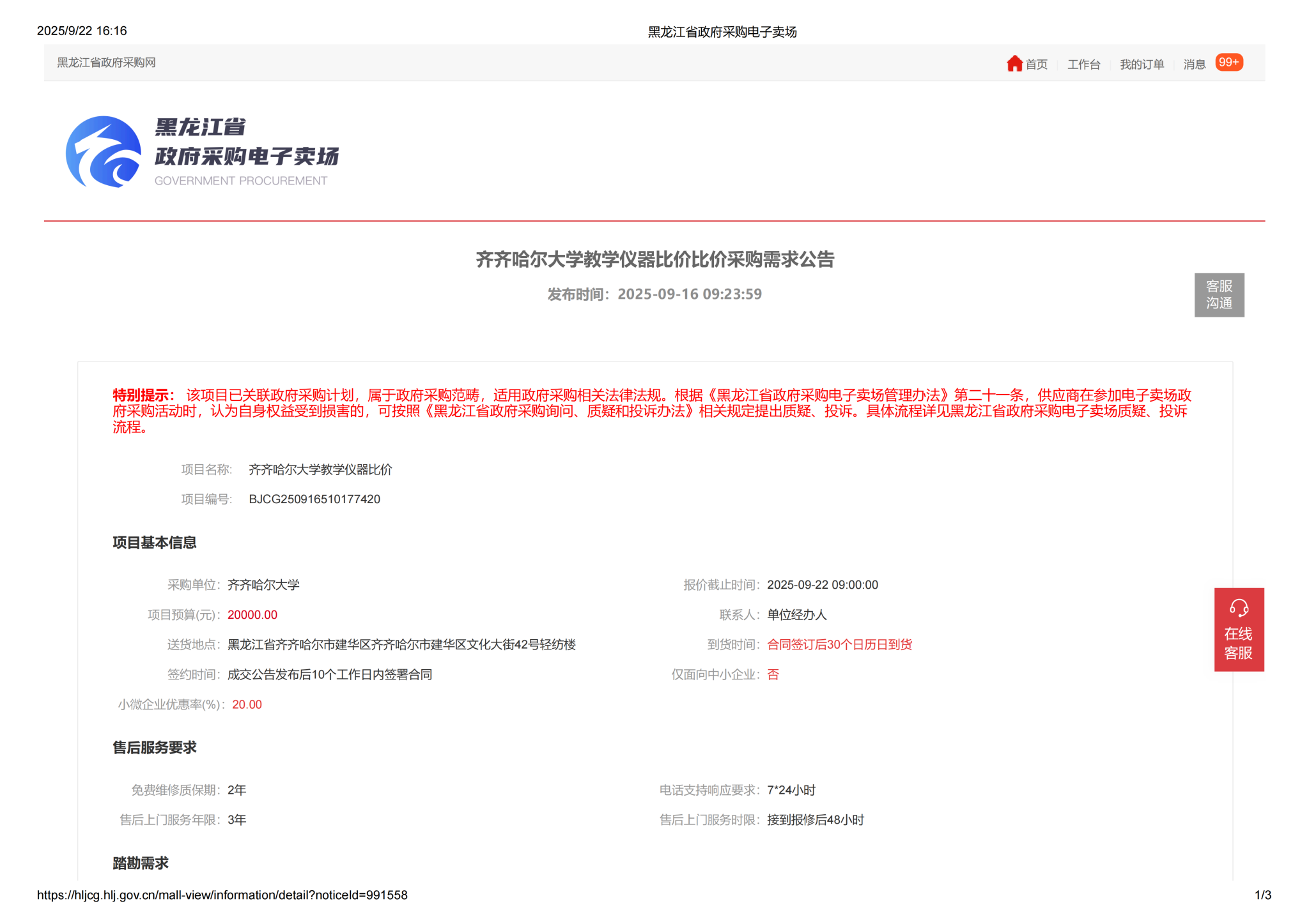 上一条:sunbet申搏官方网站教学仪器比价采购需求公告.(三次)(转自黑龙江省政府采购网)