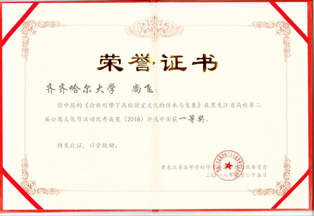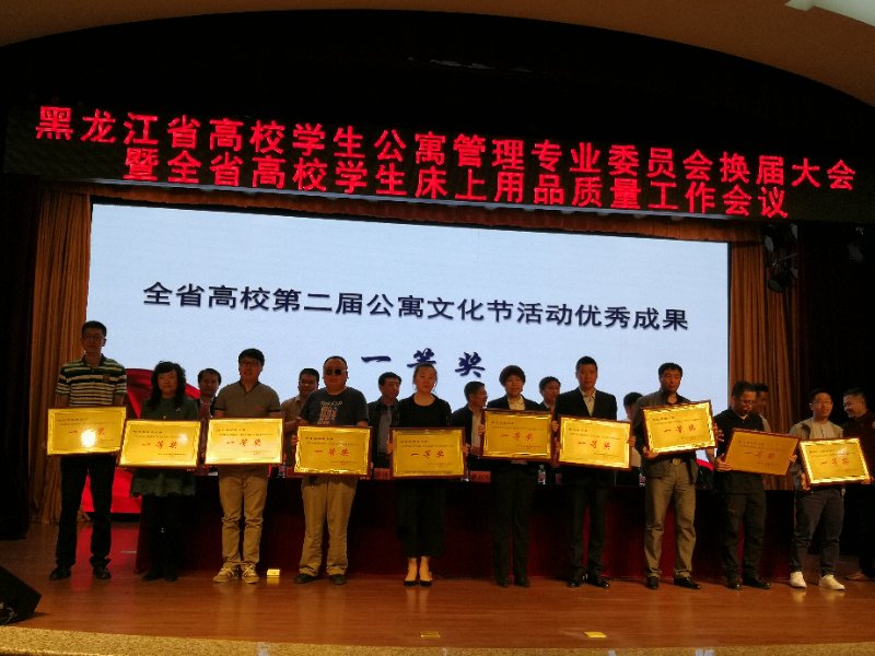 本次会议总结了第五届省寓专会工作、安排部署了第六届省寓专会工作,通报了2017年全省高校床上用品工作情况和安排部署2018年相关工作。大会同时表彰了全省高校第二届公寓文化节活动优秀成果。本届公寓文化节活动优秀成果评比从2017年10月开始征集材料,sunbet申搏以第四届“学生寝室节”为依托,组织开展了形式多样、特色鲜明的公寓文化活动,引领大学生养成良好的生活习惯,树立正确的人生观和价值观,充分发挥了学生公寓的育人功能。最终,sunbet申搏选送的公寓文化节系列活动汇编喜获“黑龙江省高校第二届公寓文化节活动”优秀成果一等奖,尚飞老师申报的论文《论新形势下高校寝室文化的传承与发展》喜获“黑龙江省高校第二届公寓文化节活动”优秀论文一等奖。这是继2017年sunbet申搏荣获全国高校学生公寓工作创新成果三等奖后的又一佳绩。