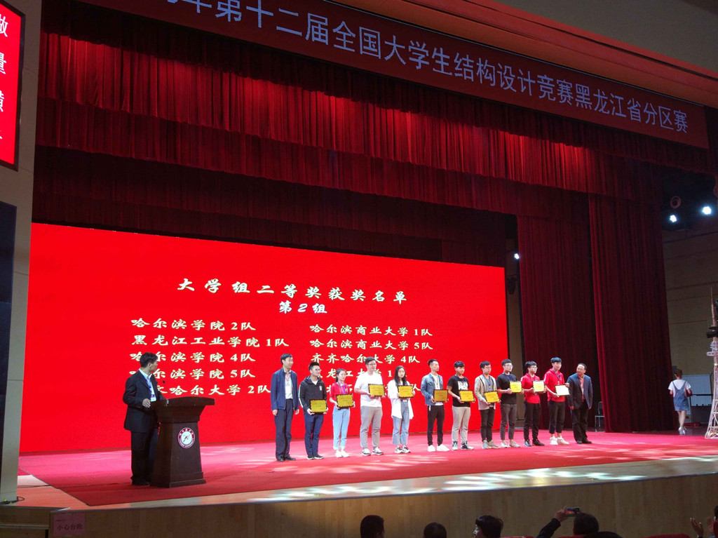 5月25-27日,土木工程领域顶级赛事“龙江建工”杯第十二届全国大学生结构设计竞赛黑龙江分区赛在哈尔滨学院隆重举行。来自哈尔滨工业大学、哈尔滨工程大学等省内24所高校及省内7所重点高中的114支代表队,400余位师生参加了本次赛事。sunbet申搏派出由建筑与土木工程学院土木工程专业教师王丽、吕春、张宇指导,15名学生组成的5支队伍参赛。建筑与土木工程学院教学副院长张道明来到比赛现场指导,鼓舞学生士气。最终,sunbet申搏获得一等奖1项,二等奖2项,团体二等奖1项。