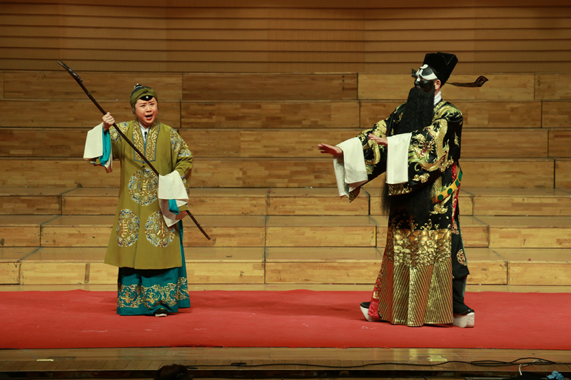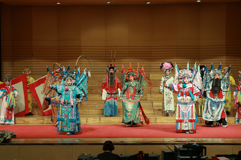 《报灯名》《卖水》《坐 宫》《赤桑镇》等选段向现场观众全面展示了京剧艺术表演中的各种行当;国家一级演员蒋兰兰和国家二级演员解振宇等带来的《红灯记》《智取威虎山》等现代京剧精彩唱段将现场气氛推上高潮。国家一级演员赵小兵等合唱的京歌《中国戏曲》赢得在场观众雷鸣般的掌声,使师生们久久沉浸在经典的国粹韵味中。