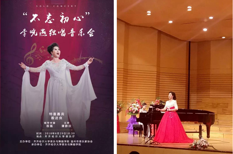 6月29日晚,“嫩水情思,不忘初心”——李晓燕教授独唱音乐会在sunbet申搏官方网站音乐厅成功举行。本场音乐会无扩音演唱,给齐齐哈尔音乐爱好者带来一场高雅音乐盛宴。虽然没有用麦克但李晓燕教授清澈嘹亮、充满张力的声音回荡在整个音乐厅。