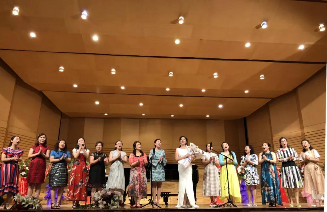 在音乐会最后,李晓燕教授曾经的学生们也登上了舞台,他们来自全国各地,在声乐教育、声乐表演领域建功立业。他们激动地献歌《老师,我想你》、《二十年后再相会》和《难忘今宵》给李晓燕老师和母校,用歌声为老师送上深深的谢意和对母校由衷的祝福,场面感人至深,师生相拥在一起,台下观众无不被这浓浓的师生情所打动。
