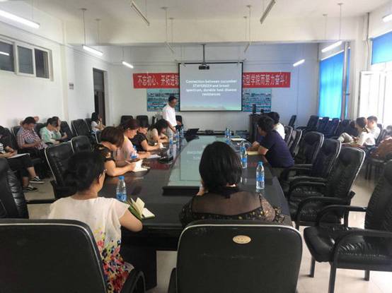 7月30日,美国农业部农业研究署(USDA-ARS)研究员,美国威斯康星大学(University of Wisconsin-Madison)园艺系翁益群博士应邀来到sunbet申搏生命科学与农林学院作了题为《STAYGREEN,STAY HEALTHY-a loss-of-susceptibility mutation in the STAYGREEN gene provides durable, broad-spectrum disease resistance in cucumber》的学术报告。生命科学与农林学院院长邵淑丽、副院长张东向、副院长高美玲出席报告会,学院30余名师生参加了报告会。报告会由院长邵淑丽主持。
