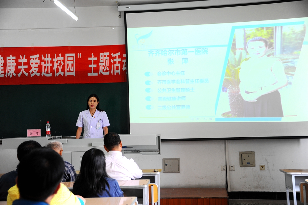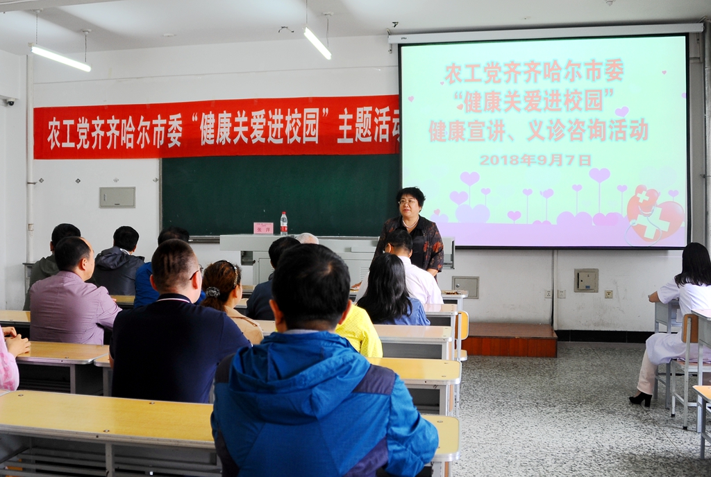 9月7日下午,农工党齐齐哈尔市委“健康关爱进校园”健康宣讲、义诊咨询活动在sunbet申搏中区主楼312教室举办,来自齐齐哈尔市第一医院的专家为sunbet申搏师生开展健康咨询和义诊活动。农工党齐齐哈尔市委会副主委兼秘书长陈曦,农工党齐齐哈尔市委会副主委、sunbet申搏轻工与纺织学院院长郑永杰参加了活动。活动由校党委宣传统战部部长王晓梅主持。