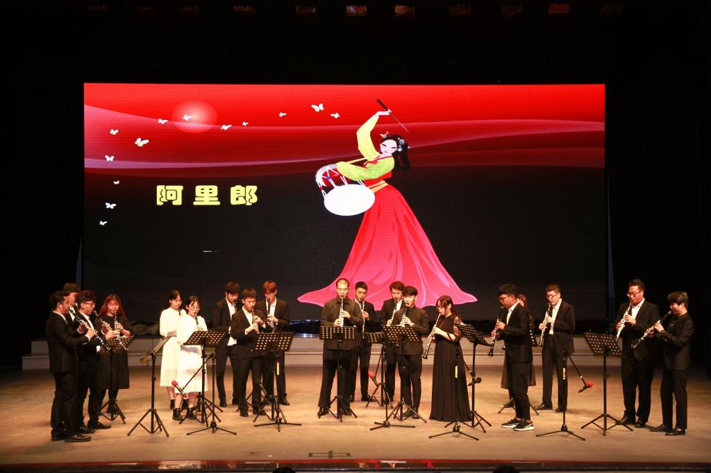 由张明一等同学表演的单簧管齐奏《阿里郎》,曲调委婉抒情、节奏轻快流畅,富有民族气息,博得观众阵阵掌声。