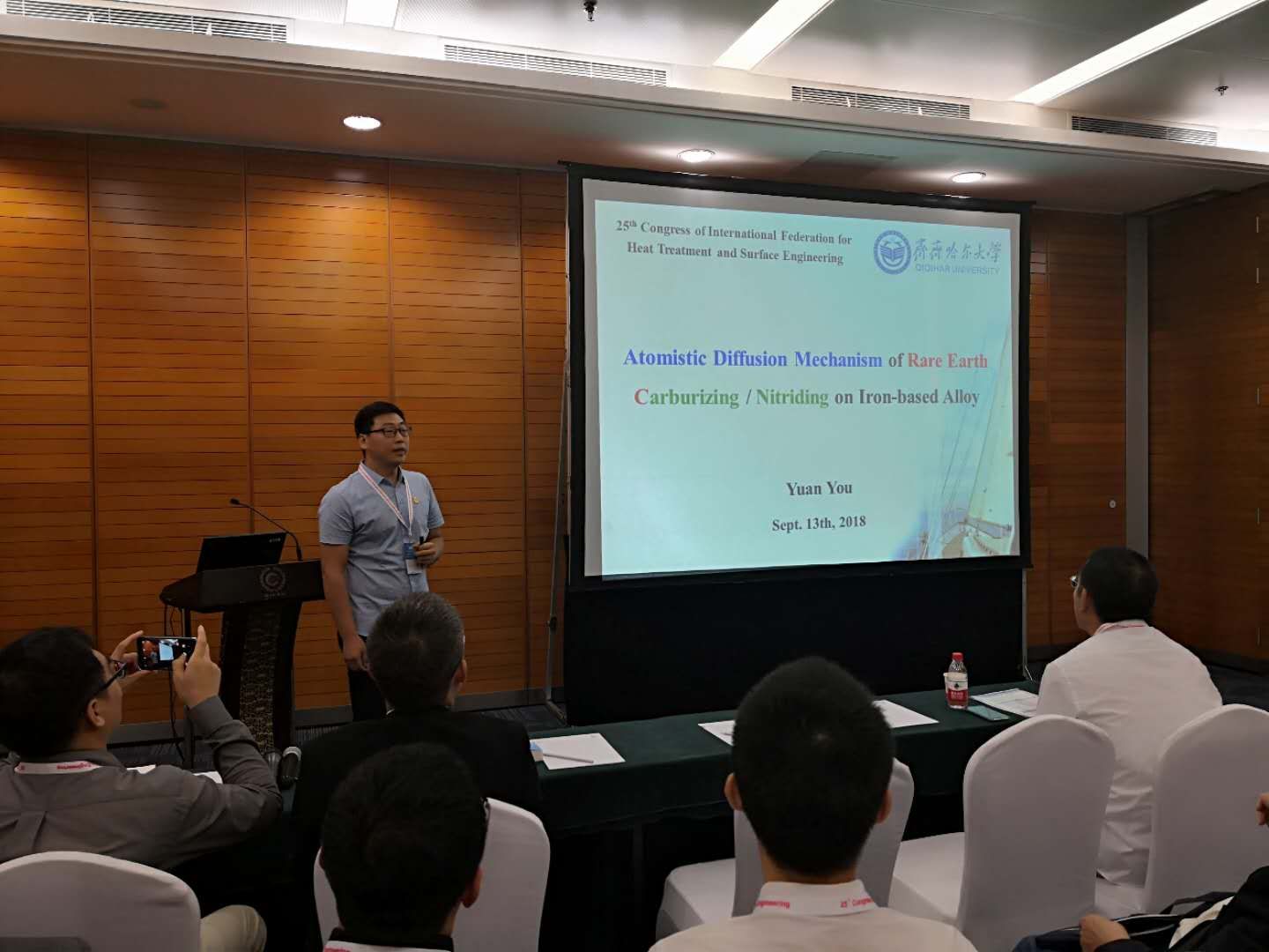 由园老师在化学热处理分会场做了题目为《Atomistic Diffusion Mechanism of Rare Earth Carburizing / Nitriding on Iron-based Alloy》报告,主要介绍了铁基合金稀土渗碳(氮)的原子扩散机制。与会专家学者对报告非常感兴趣,纷纷提出问题展开讨论。