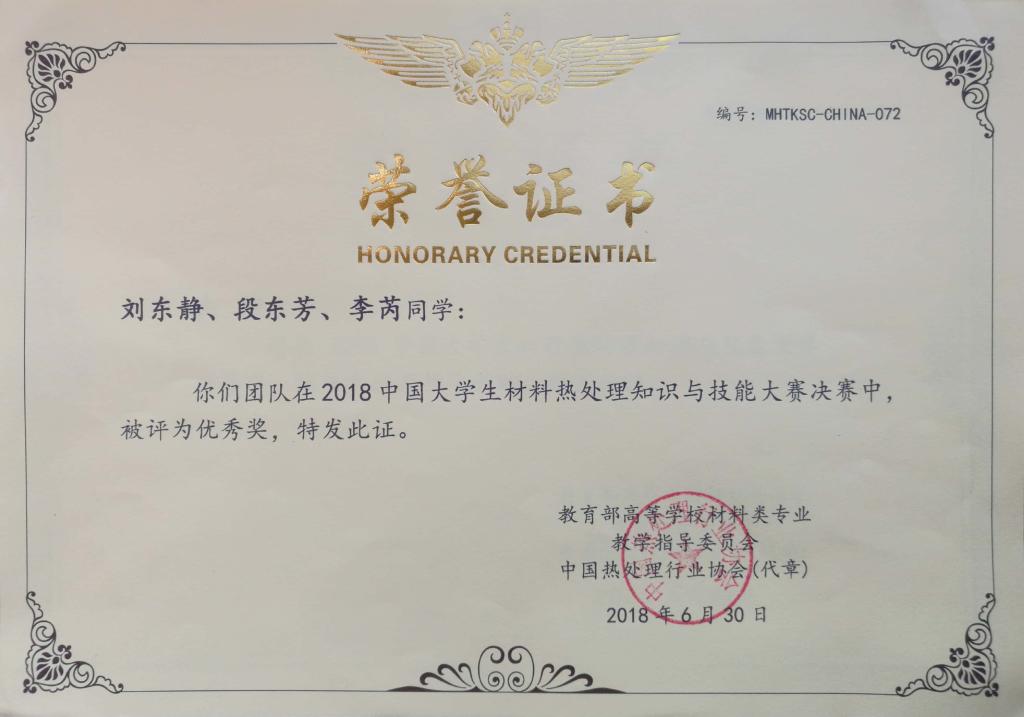 中国大学生材料热处理知识与技能大赛,是我国材料热处理突破性人才培养的重要组成部分,是为学生提供一个展示其本人、及其材料热处理知识技能和创新创业成果平台,也是发现和培养材料热处理人才的有效途径。