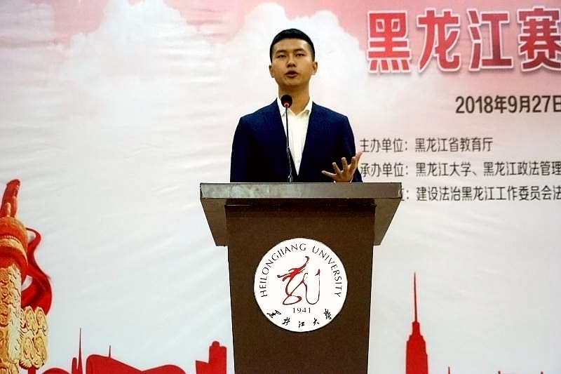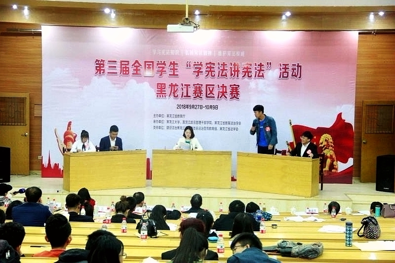 宪法学习宣传是法治宣传和高校学生思想政治教育的重要内容。根据《全省高校法学专业大学生“学宪法讲宪法”主题演讲比赛实施方案》(黑法会字﹝2018﹞46号)《省教育厅关于开展第三届全省学生“学宪法讲宪法”活动的通知》(黑教法函﹝2018﹞240号)要求,9月28日,由黑龙江省教育厅主办,黑龙江省政法管理干部学院、黑龙江省教育法治学会承办,由建设法治黑龙江工作委员会法治宣传教育组、黑龙江省法学会提供支持的第三届“学宪法讲宪法”主题演讲比赛黑龙江赛区总决赛在黑龙江大学阳光讲坛圆满落下帷幕。sunbet申搏哲学与法学学院法学162班奚宽豪同学经学院遴选在校党委宣传统战部、校团委的组织下参加了此次大赛并荣获三等奖。