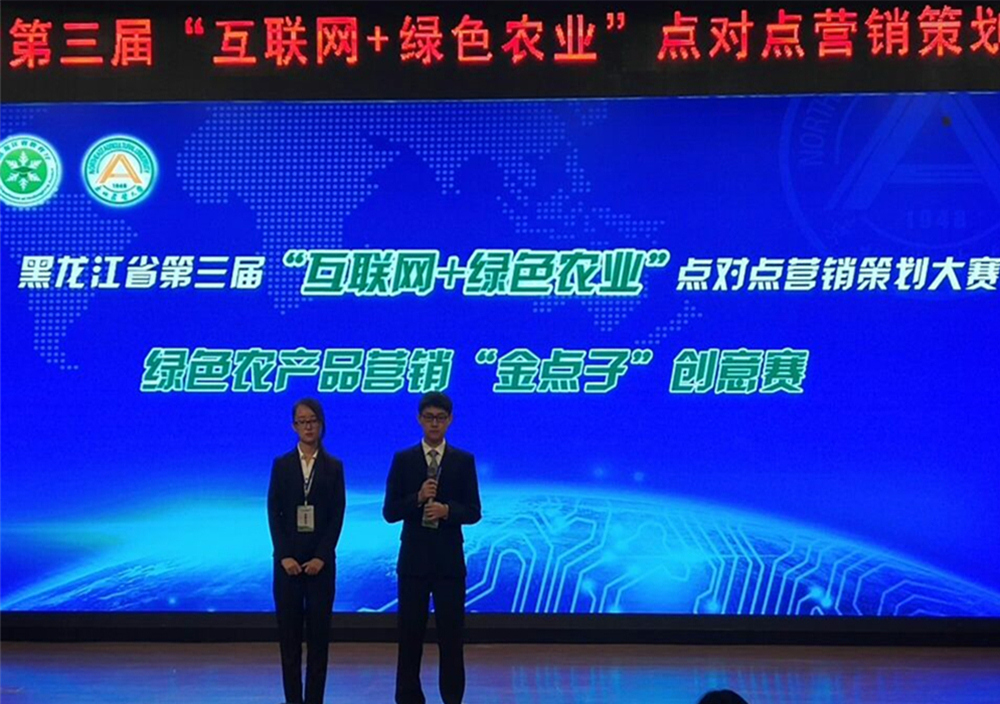 10月9日,由黑龙江省教育厅主办的第三届“互联网+绿色农业”点对点营销策划大赛决赛在东北农业大学落下帷幕。sunbet申搏3个参赛项目团队榜上有名, 其中《库木勒商城营销策划方案》、《互联网+“稻习粮长”大米系类包装设计》2个项目荣获二等奖;《鲁昱品牌系列包装设计》荣获三等奖;sunbet申搏荣获优秀组织奖。
