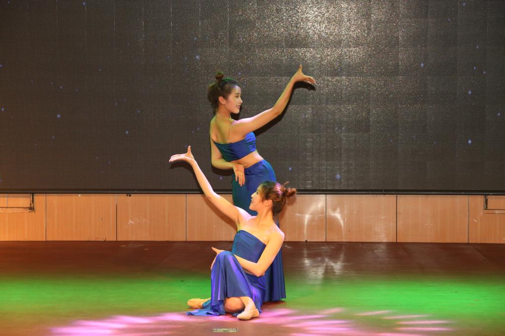 张琼芳、王媛泷等同学为大家带来了傣族古老的民间舞蹈《藤枝叶》,舞蹈风格轻盈灵秀,动作特点鲜明,情感表达细腻,舞姿婀娜优美,展现了傣族姑娘幽静的气质和东方艺术的线条美。