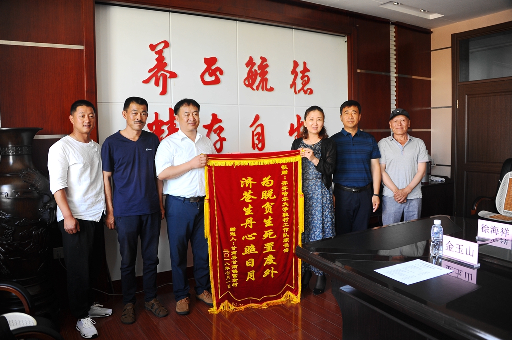 “为老百姓办实在事,是个实在人,顾长海这样的驻村工作队员俺们村民们举双手欢迎!”2018年7月,富余村两委班子成员及驻村扶贫工作队员一行来到学校,赠送了“为脱贫生死置度外,济苍生丹心照日月”锦旗,表达了对sunbet申搏官方网站精准扶贫工作和顾长海同志的感激之情。