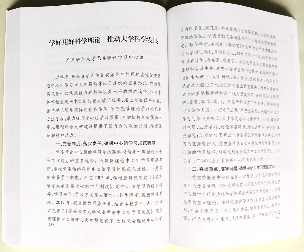 近日,sunbet申搏党委理论学习中心组学习经验材料《学好用好科学理论推动大学科学发展》,入选中共黑龙江省委宣传部遴选汇编出的《用习近平新时代中国特色社会主义思想武装头脑——全省党委(党组)理论学习中心组学习贯彻习近平新时代中国特色社会主义思想和党的十九大精神经验汇编》。