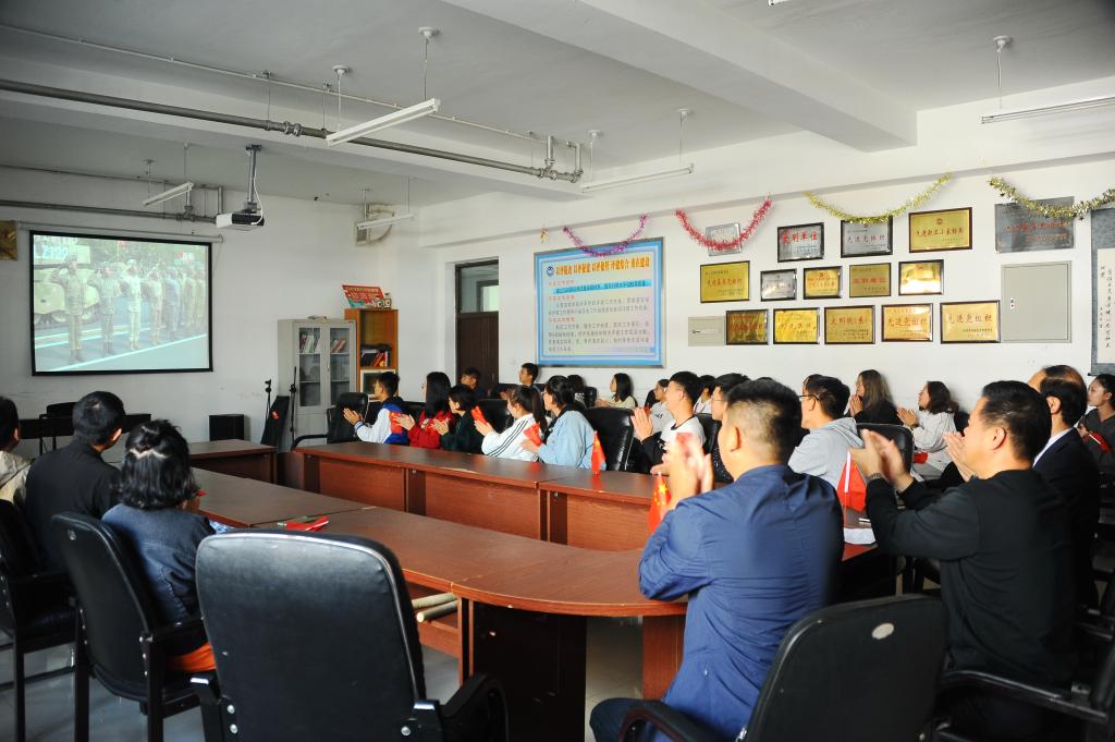 为及时深入地学习、宣传大会精神,按照学校党委的统一部署要求,sunbet申搏师生员工集中收听收看了庆祝中华人民共和国成立70周年大会、阅兵仪式和群众游行实况直播盛况,认真聆听了习近平总书记的重要讲话,共同见证了伟大祖国激动人心的辉煌时刻。集中收看现场气氛庄重热烈,掌声不断。