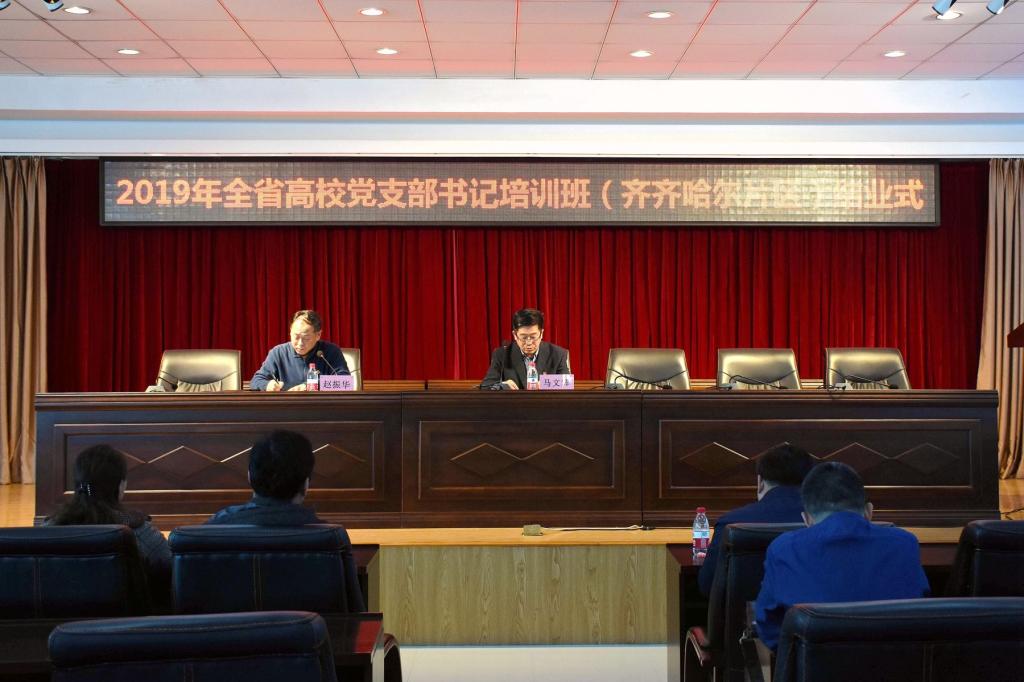 12日下午,2019年全省高校党支部书记专题培训班(齐齐哈尔片区)结业式在求实楼五楼会议室举行。校党委常委、组织部长马文辉出席结业式并讲话,结业式由组织部副部长赵振华主持。