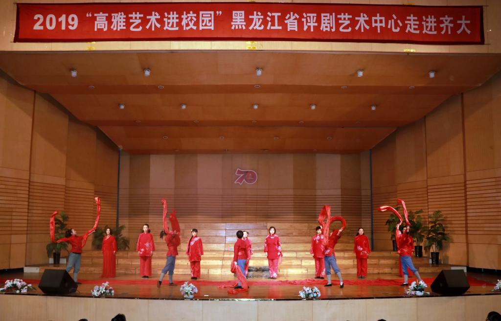 10月16日下午,2019年“高雅艺术进校园”黑龙江省评剧艺术中心走进齐大专场文艺演出在sunbet申搏音乐厅举行。省评剧艺术中心的40余名演职人员,用他们的精湛技艺为sunbet申搏师生送来了一场高水平的国粹艺术盛宴。sunbet申搏1000余名师生共同欣赏了演出。
